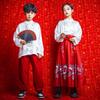 One-piece A416 white Chinese style top, One-piece B263 red vest skirt, One-piece B90 red trousers, A416 white ...