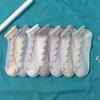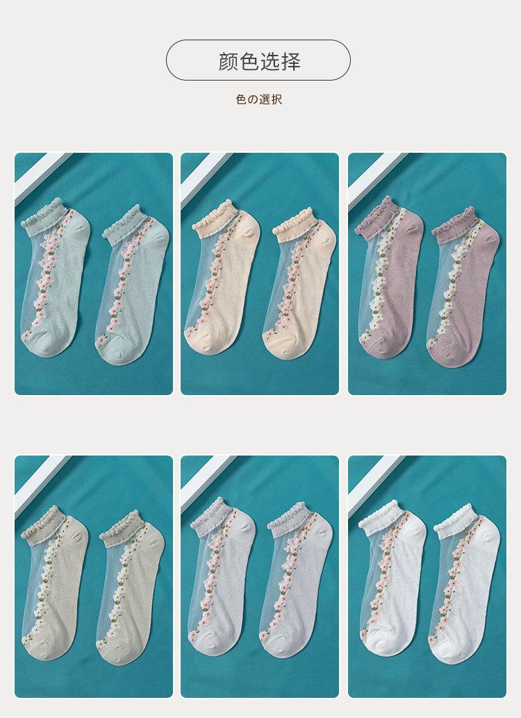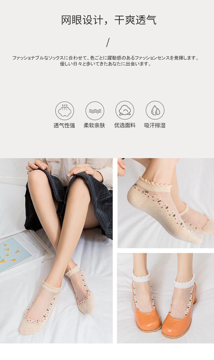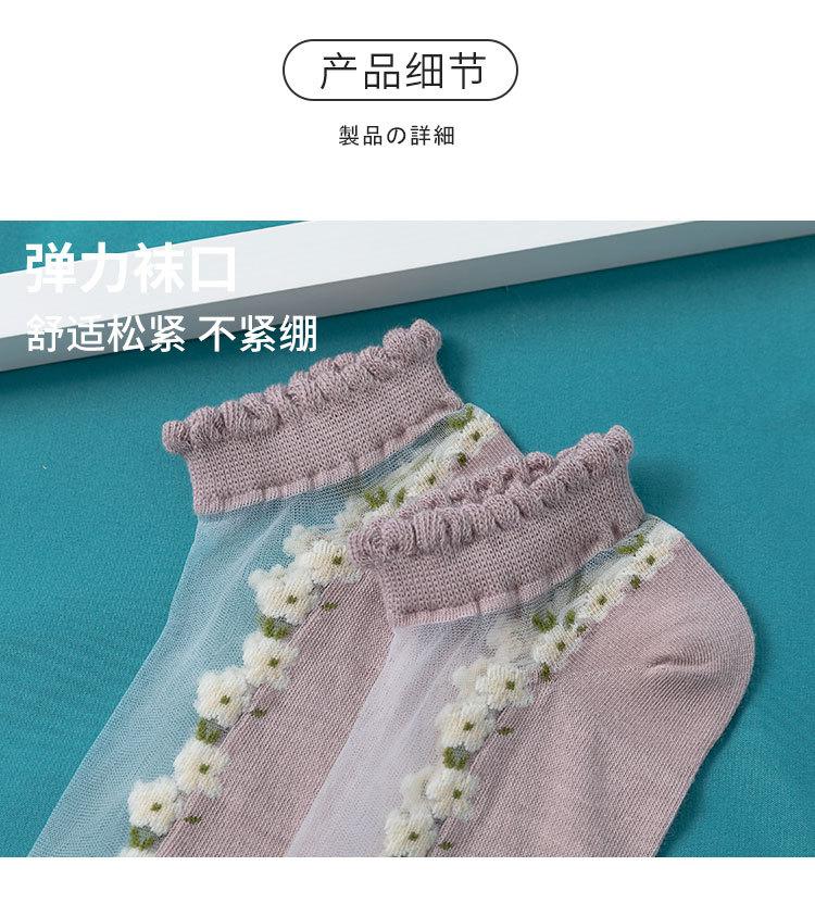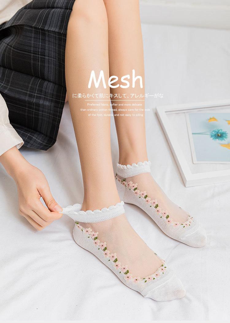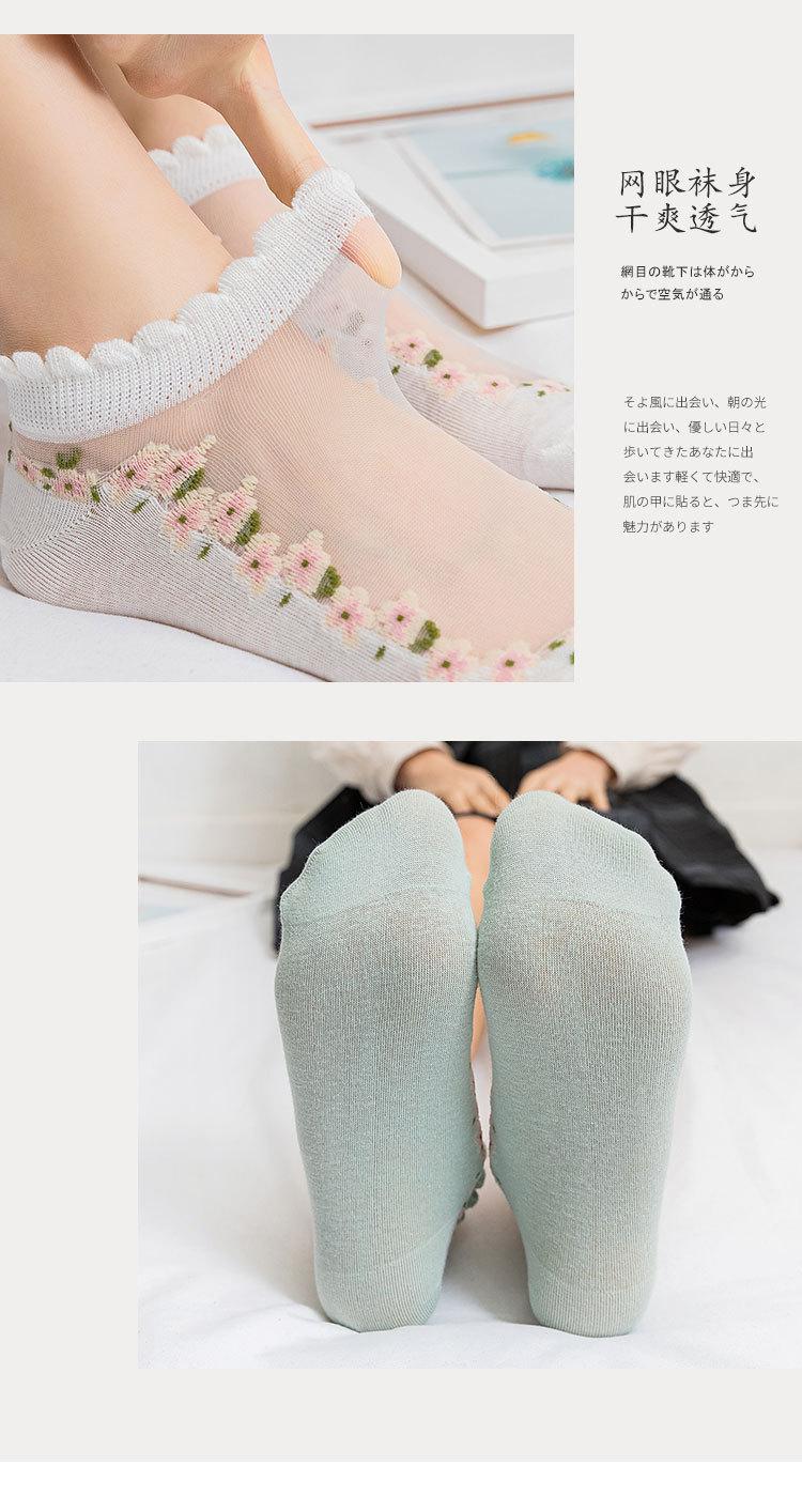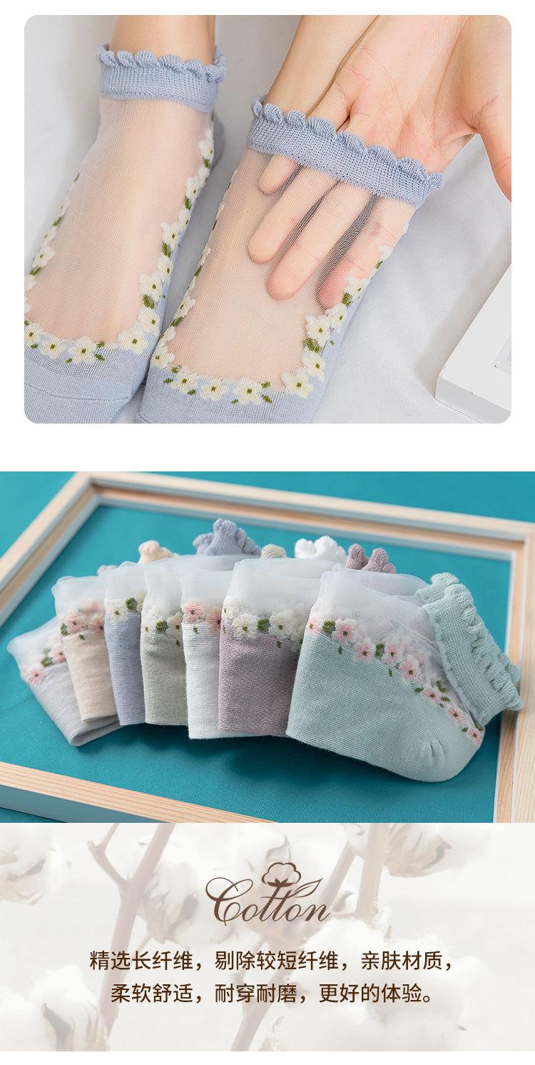 Meias Meias Finas Femininas Primavera e Verão Seda de Vidro Renda Cristal Meias Sapatilha Algodão Meias Respiráveis Absorventes de Suor Atacado
