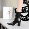 Botas de tornozelo pontiagudas retrô europeias e americanas femininas 2023 Novas botas finas de couro envernizado de salto alto elegante