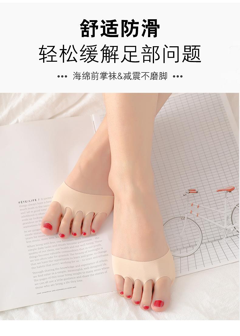 Meias de meio pé meias femininas salto alto versátil meias de seda gelo meias de dedo meias de cinco dedos meias sapatilha almofada de meio pé atacado