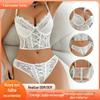 Lingerie Sexy Francesa, Design de Alças Pure Lust, Conjunto de Lingerie Respirável de Tecido Bolha, Seios Pequenos Mostram Sutiã Push-Up Grande