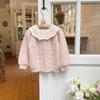 Suéter Pulôver Infantil para Bebê Menina Primavera e Outono Suéter Doce com Gola Babado Suéter Fofo com Gola de Renda Pulôver Rosa