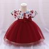 Vestido de laço grande para crianças de um ano Vestido de banquete de aniversário do bebê Vestido de lantejoulas Vestido de princesa de malha Show