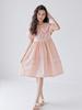 Vestido de Manga Curta para Meninas 2026 Verão Novo Estilo Vestido de Algodão com Manga Bufante e Gola para Crianças Maiores Doce Vestido de Princesa