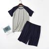 Pijama de Modal Masculino Conjunto Manga Curta Shorts Fino Cor Contrastante Verão Solto Tamanho Grande Conjunto de Duas Peças Respirável e Fresco