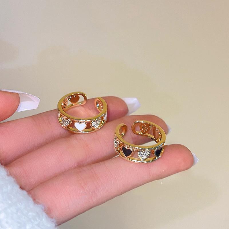 Anel Aberto Exclusivo de Coração Vazado Requintado Zircônia para Mulheres, Anel Versátil de Personalidade da Moda de Luxo Leve de Alta Qualidade