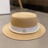 Chapéu de Palha Pérola Estilo Chanel Estilo Hepburn Francês Verão Celebridade Férias à Beira-Mar Chapéu de Praia Protetor Solar Guarda-sol Chapéu