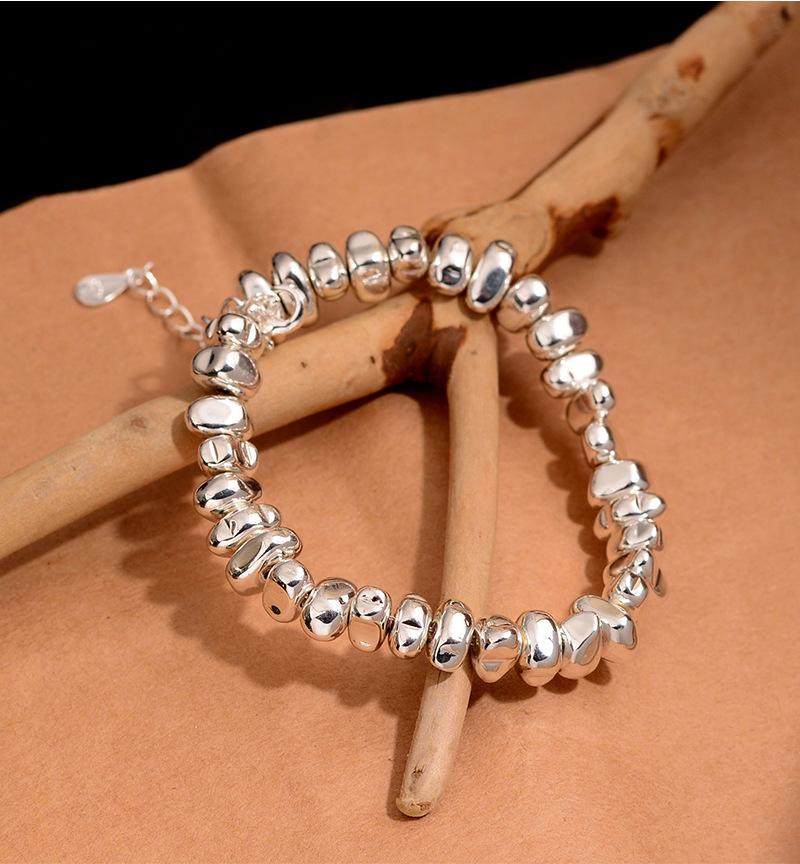 Design de nicho pulseira geométrica prateada quebrada com miçangas pulseira de estilo frio de alta qualidade pulseira elegante que combina com tudo
