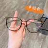 Óculos de grau anti-luz azul, armação de orelha de gato, pequeno, vermelho, livro TR90, marrom frio, retrô, simples, armação oval, para mulheres