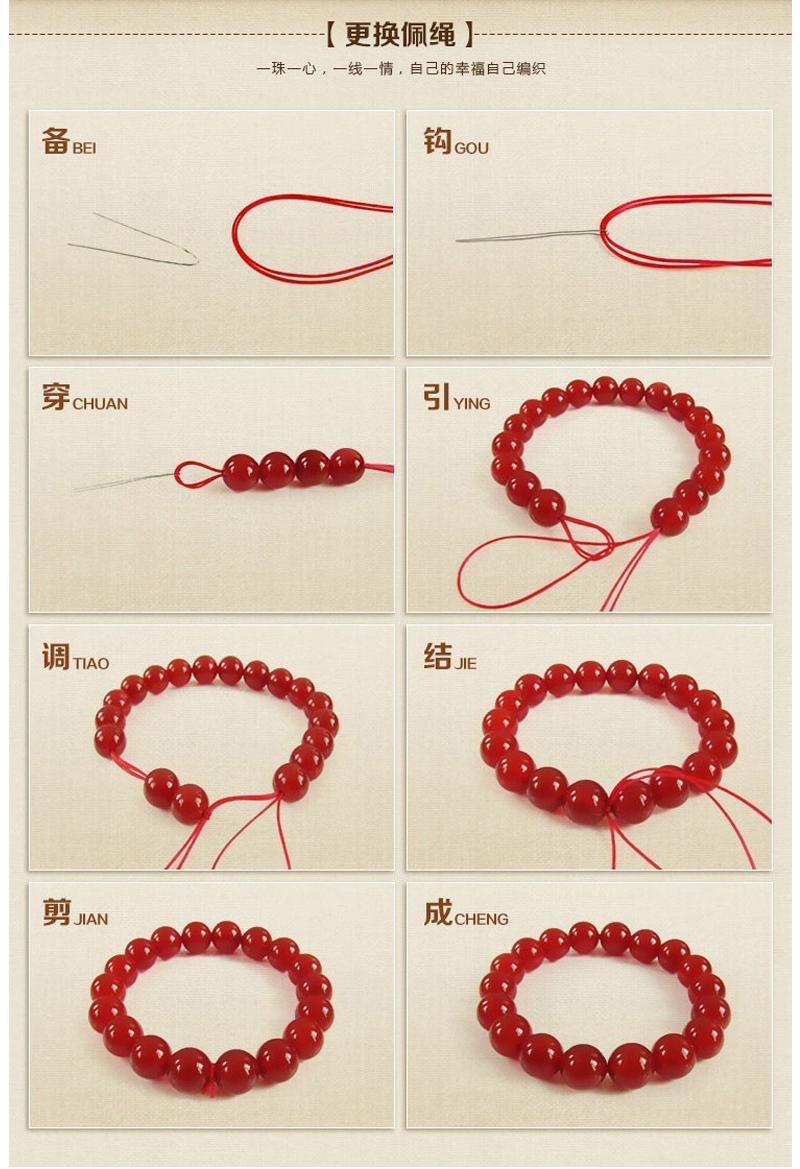 Pulseira de borracha Pulseira de corda de contas de linha elástica de contas de corda vermelha Pulseira elástica de cristal cultural Brincar com contas