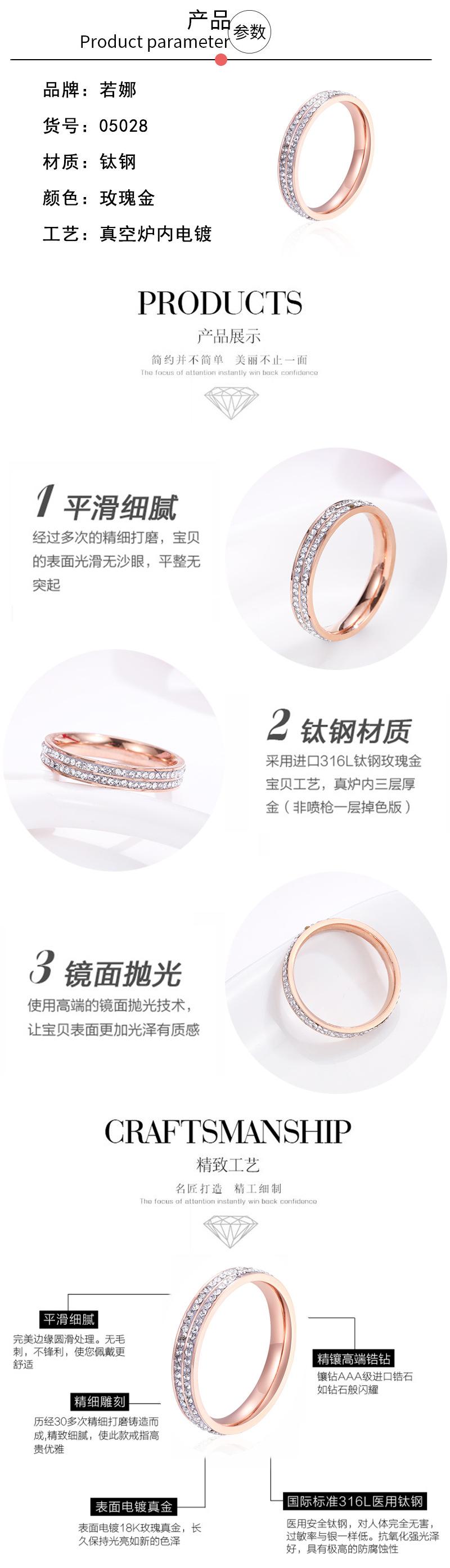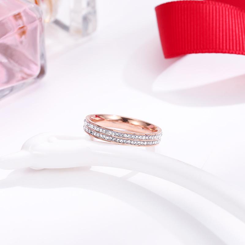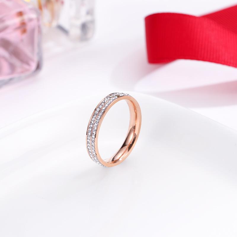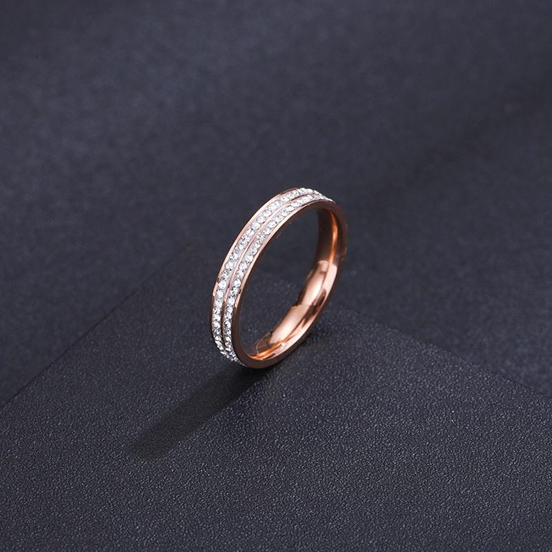 Novo Anel Feminino de Aço Titânio Ouro Rosa Diamante Completo, Moda e Simples Anel de Casal Diamante de Linha Dupla Atacado de Bijuterias