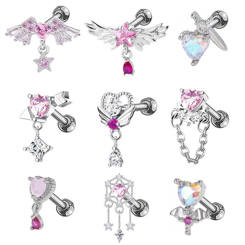 Gaibei Europeu e Americano asas transfronteiriças em forma de coração zircão osso da orelha cadeia de unhas gota de água pingente de brincos piercing osso da orelha exportação de unhas