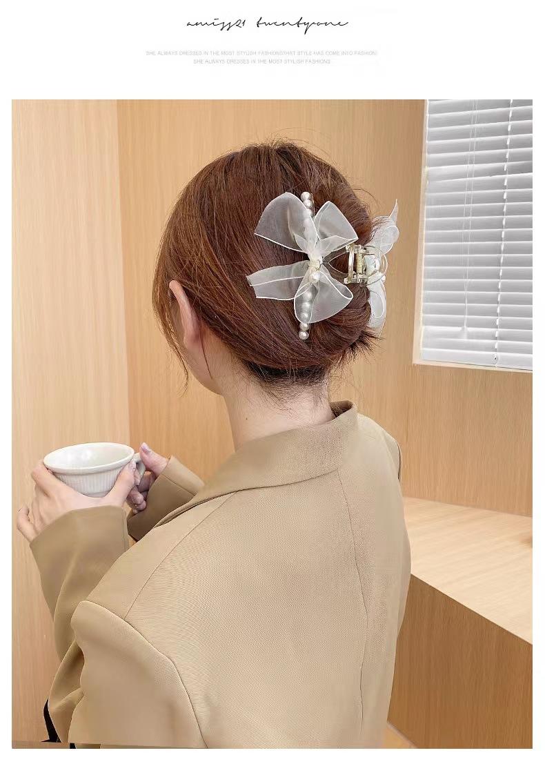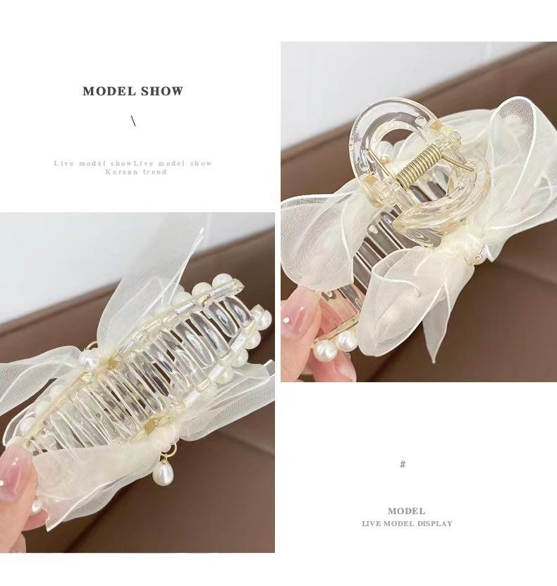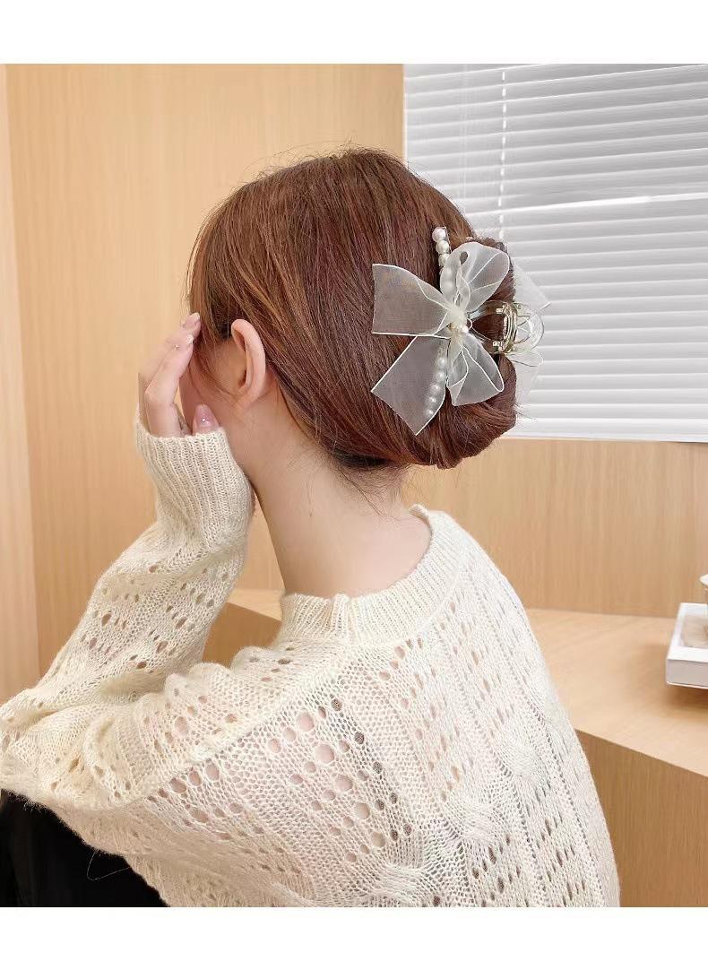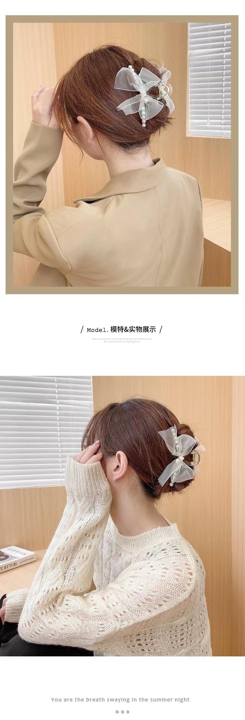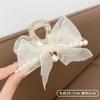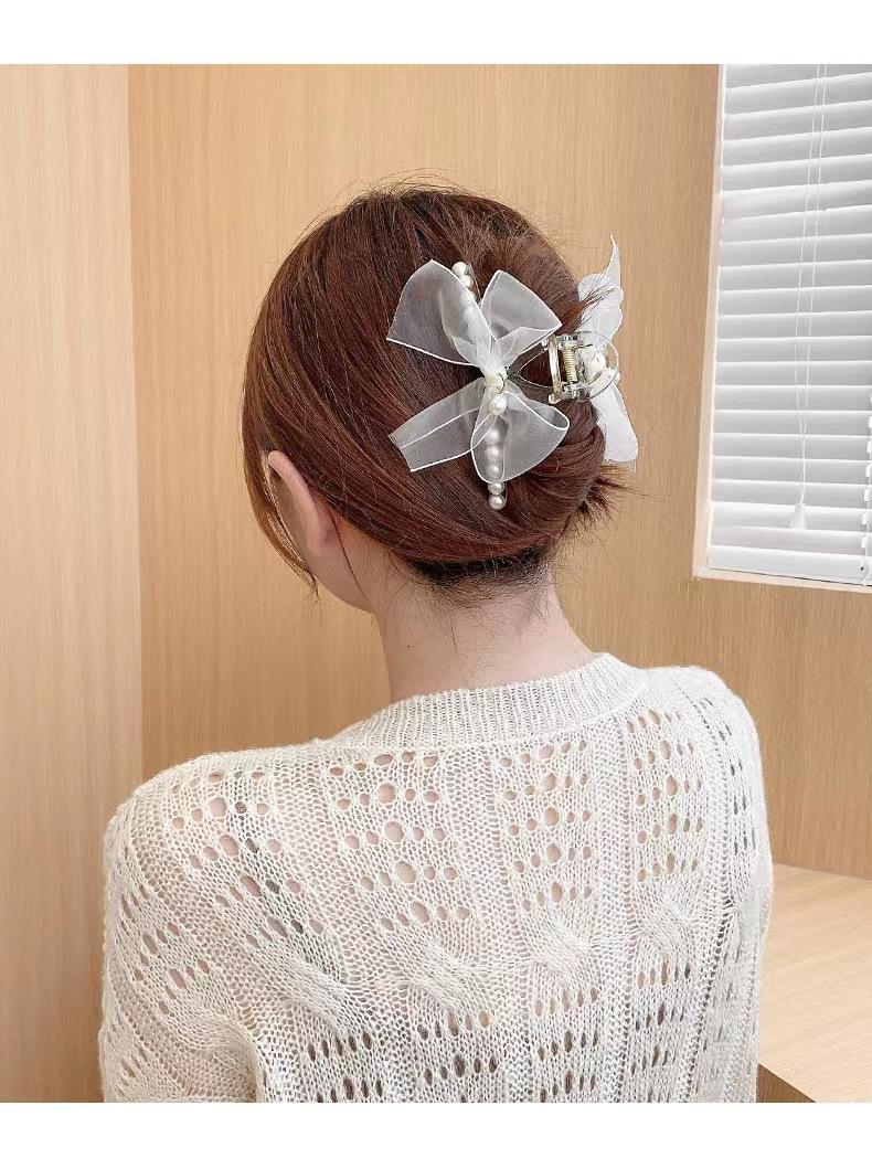 Grampo de cabelo grande com laço de malha e pérola, grampo de cabelo para celebridades da Internet 2020, novo grampo de cabelo de tubarão para trás