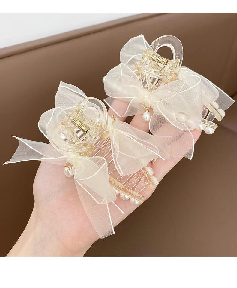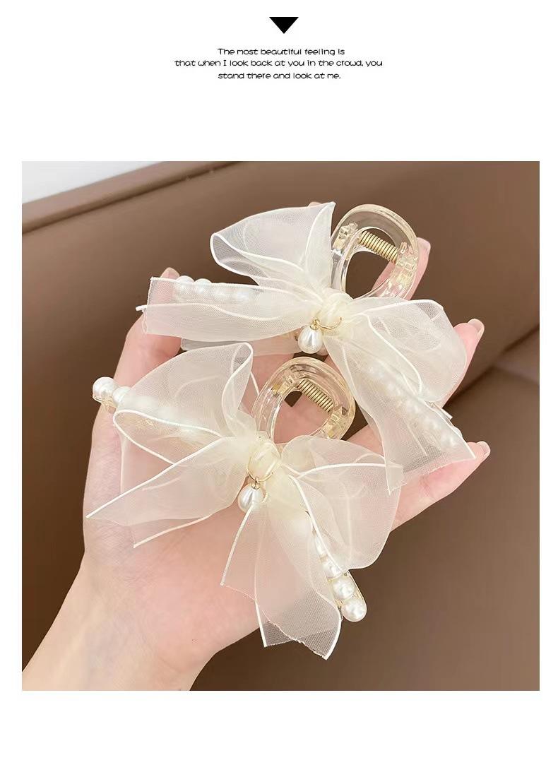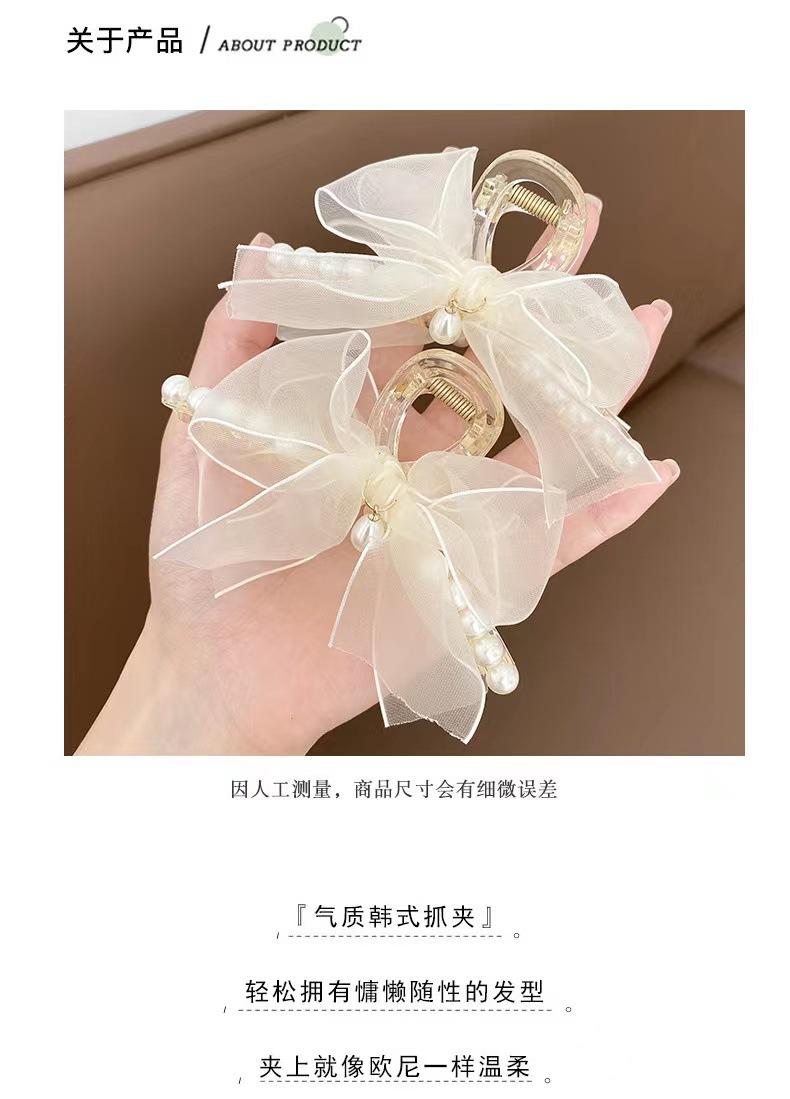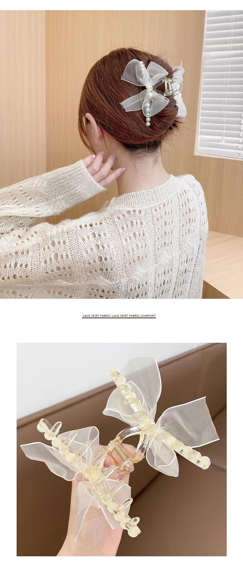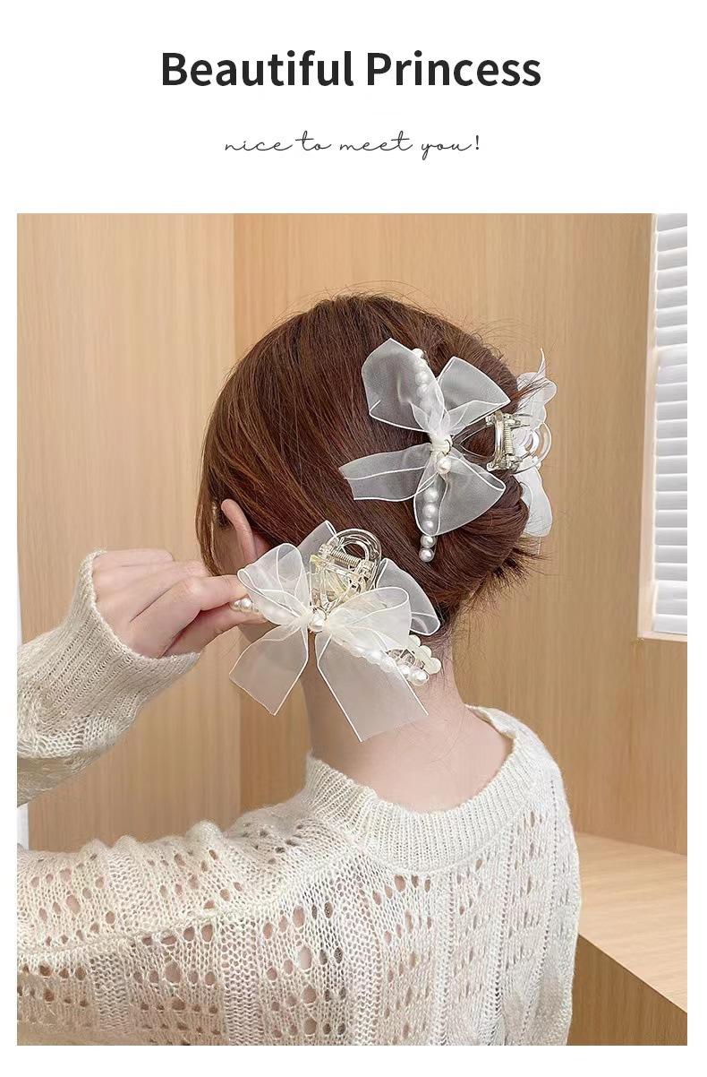 Grampo de cabelo grande com laço de malha e pérola, grampo de cabelo para celebridades da Internet 2020, novo grampo de cabelo de tubarão para trás