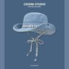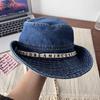Estilo coreano elegante carta cinta Denim pescador chapéu verão feminino versátil chapéu de proteção solar proteção UV chapéu de bacia de aba grande homens