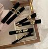 Ouro preto de alta qualidade de veludo Camélia carta grampo de cabelo vintage clipe bico de pato cocar Internet celebridade ins estilo franja clipe