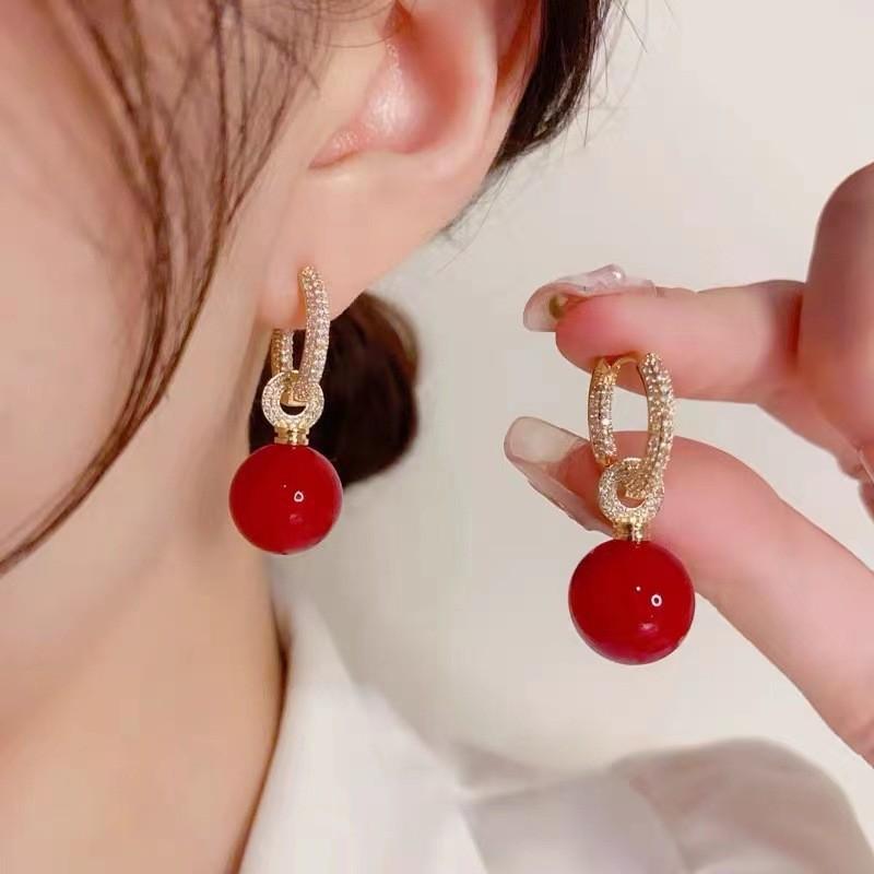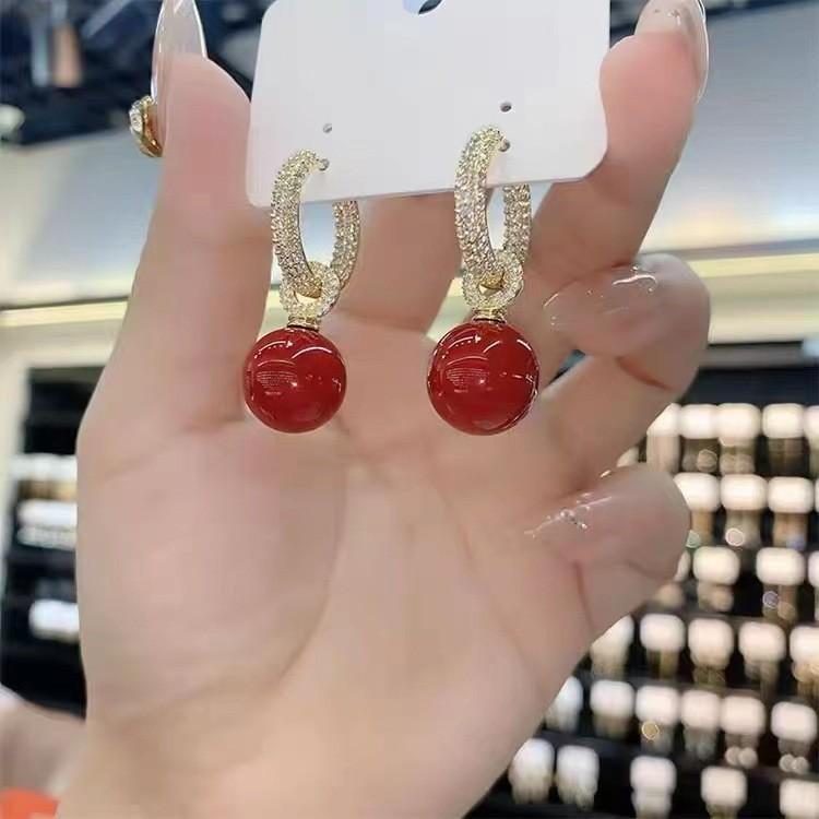 2024 Novo Design de Nicho Moderno Brincos de Pérolas Vermelhas de Alta Qualidade Moda Elegante All-match Brincos Brincos Brincos