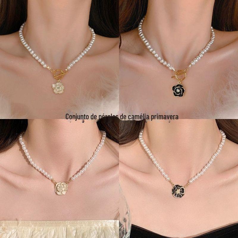2024 Nova Camélia Colar de Pérolas Colar de Pérolas Feminino Retro Court Niche Elegante Clavícula Cadeia