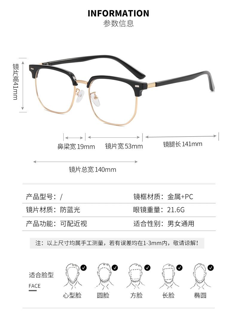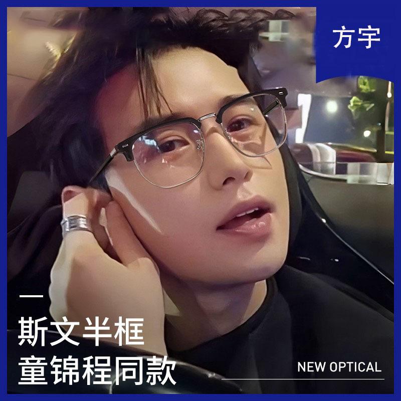 2023 novos óculos anti-luz azul sobrancelhas retrô espelho plano alto Yan óculos de miopia literária ultra leve armação atacado