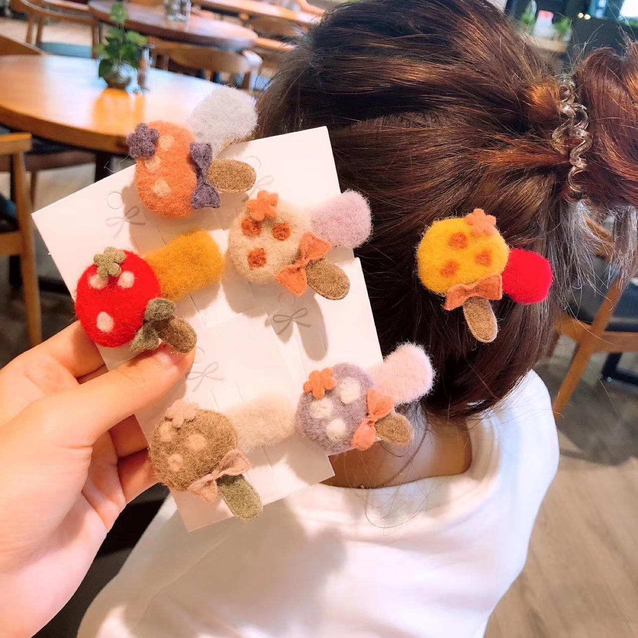 Estilo coreano outono e inverno novo cogumelo de pelúcia acessórios para cabelo infantil desenho animado arco grampo de cabelo bonito grampo lateral cocar