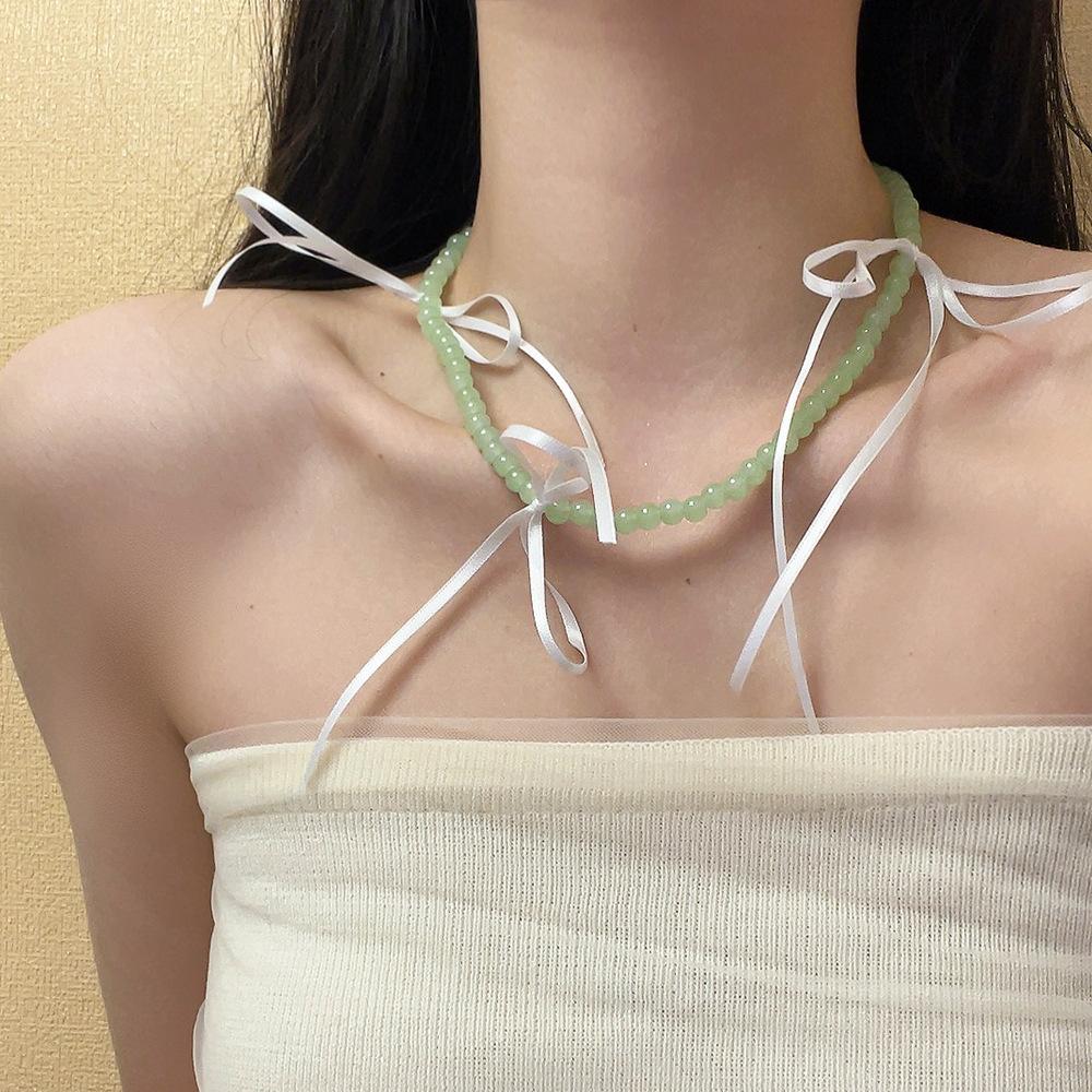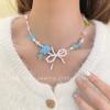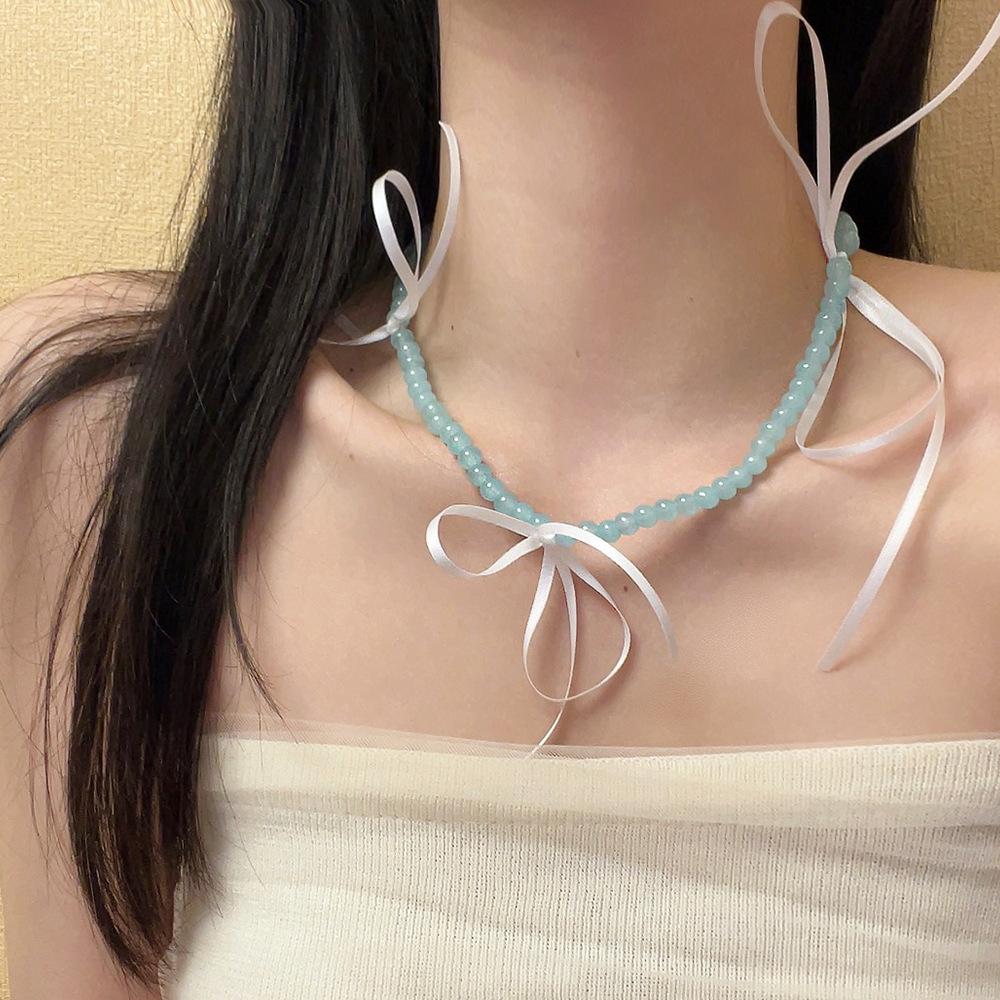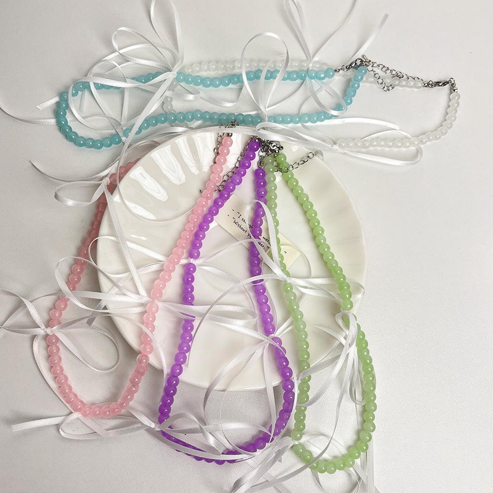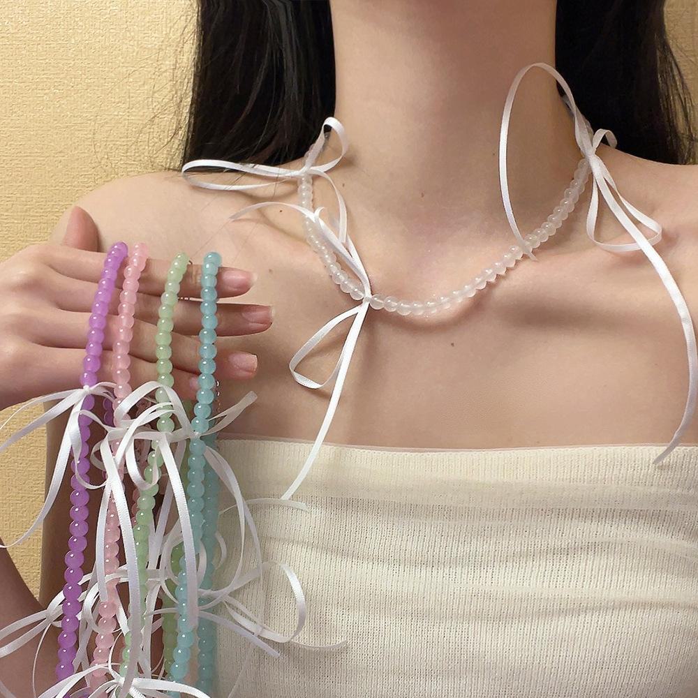 2024 Primavera e Verão Candy Color Bow Colar de Contas Floresta Feminina Super Fada Gargantilha Clavícula Cadeia Pescoço Colar Corrente