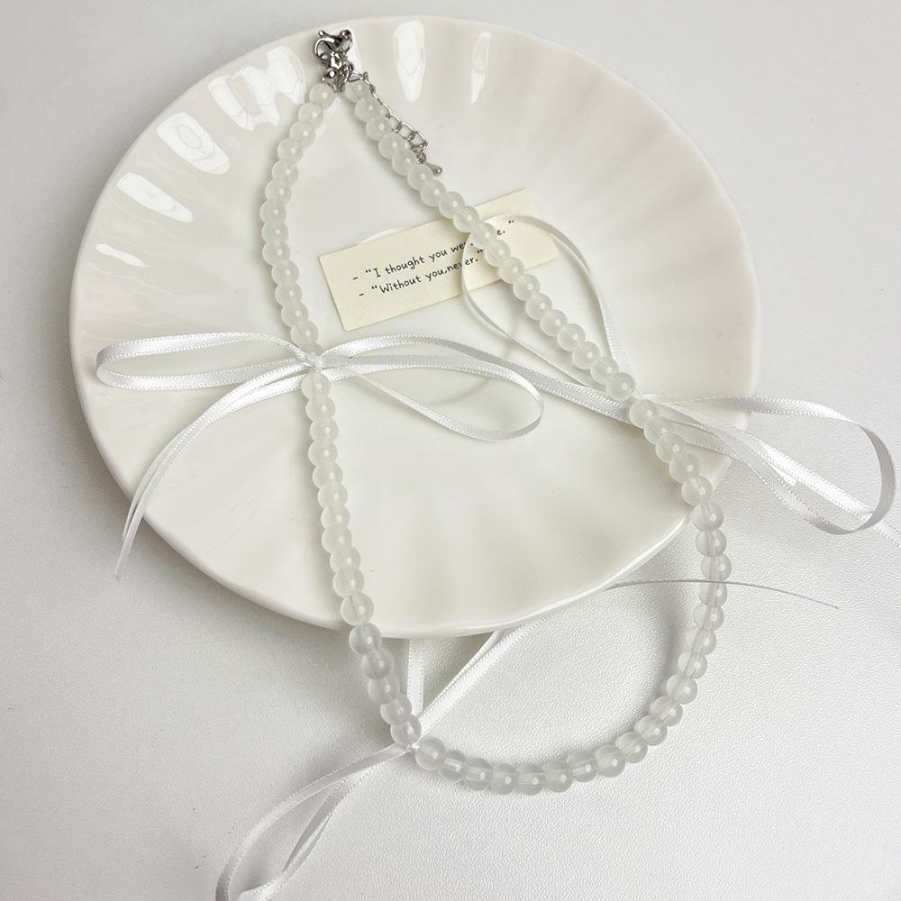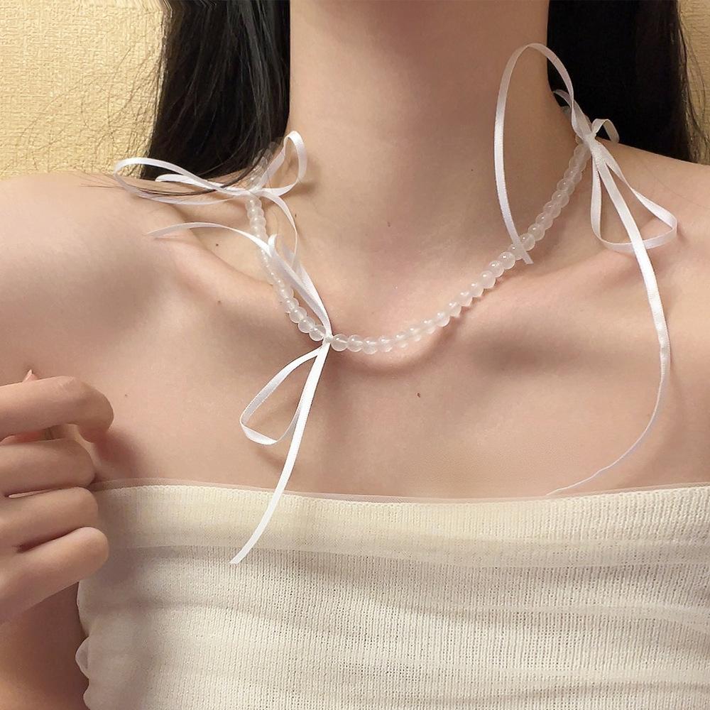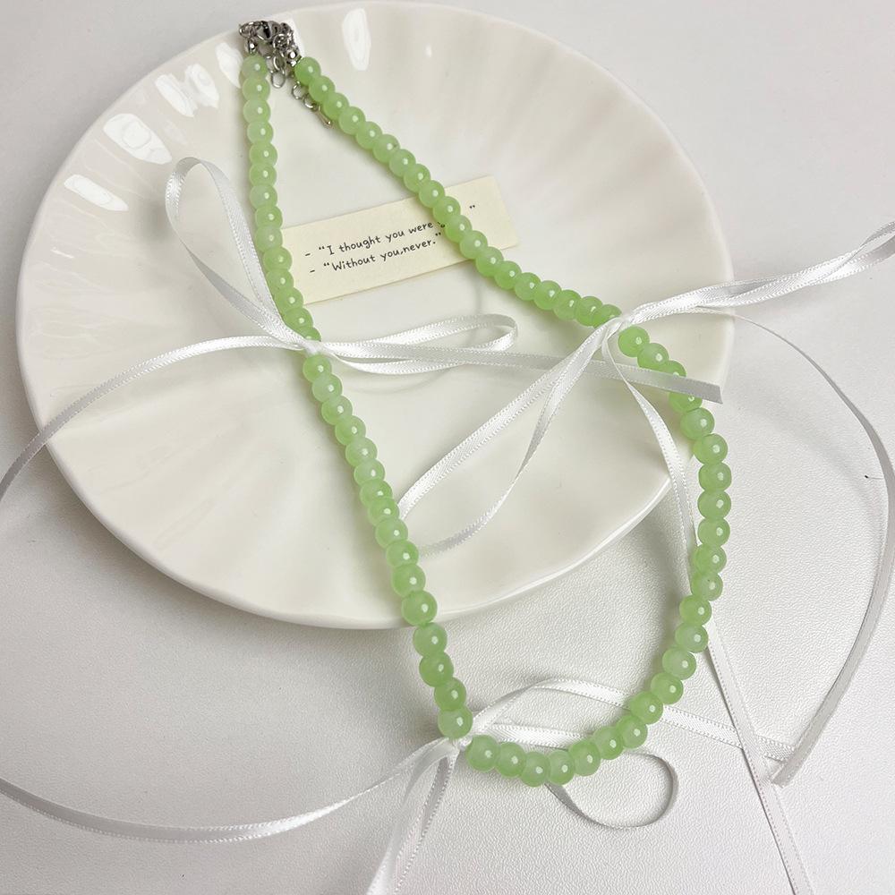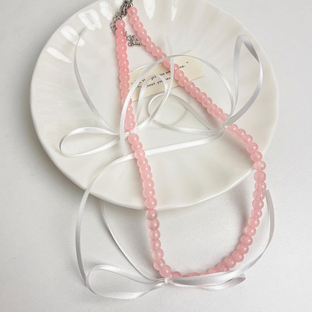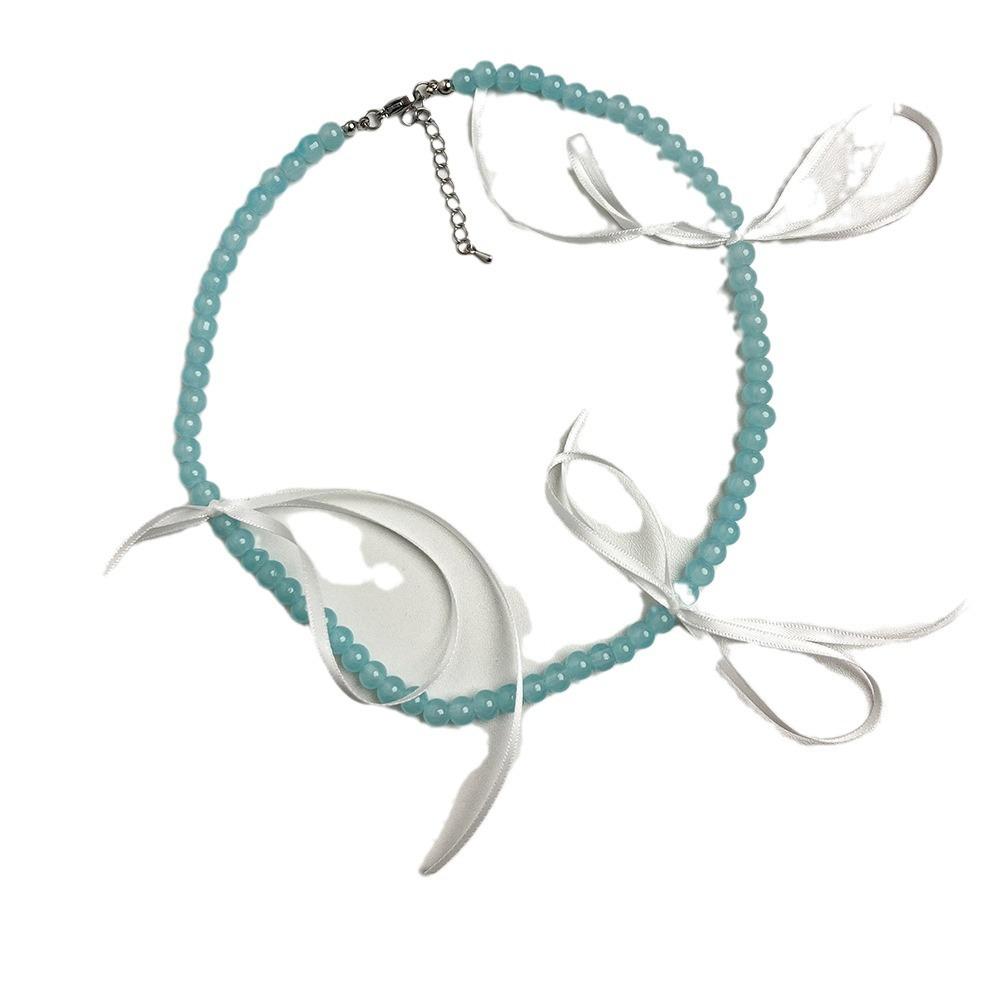 2024 Primavera e Verão Candy Color Bow Colar de Contas Floresta Feminina Super Fada Gargantilha Clavícula Cadeia Pescoço Colar Corrente