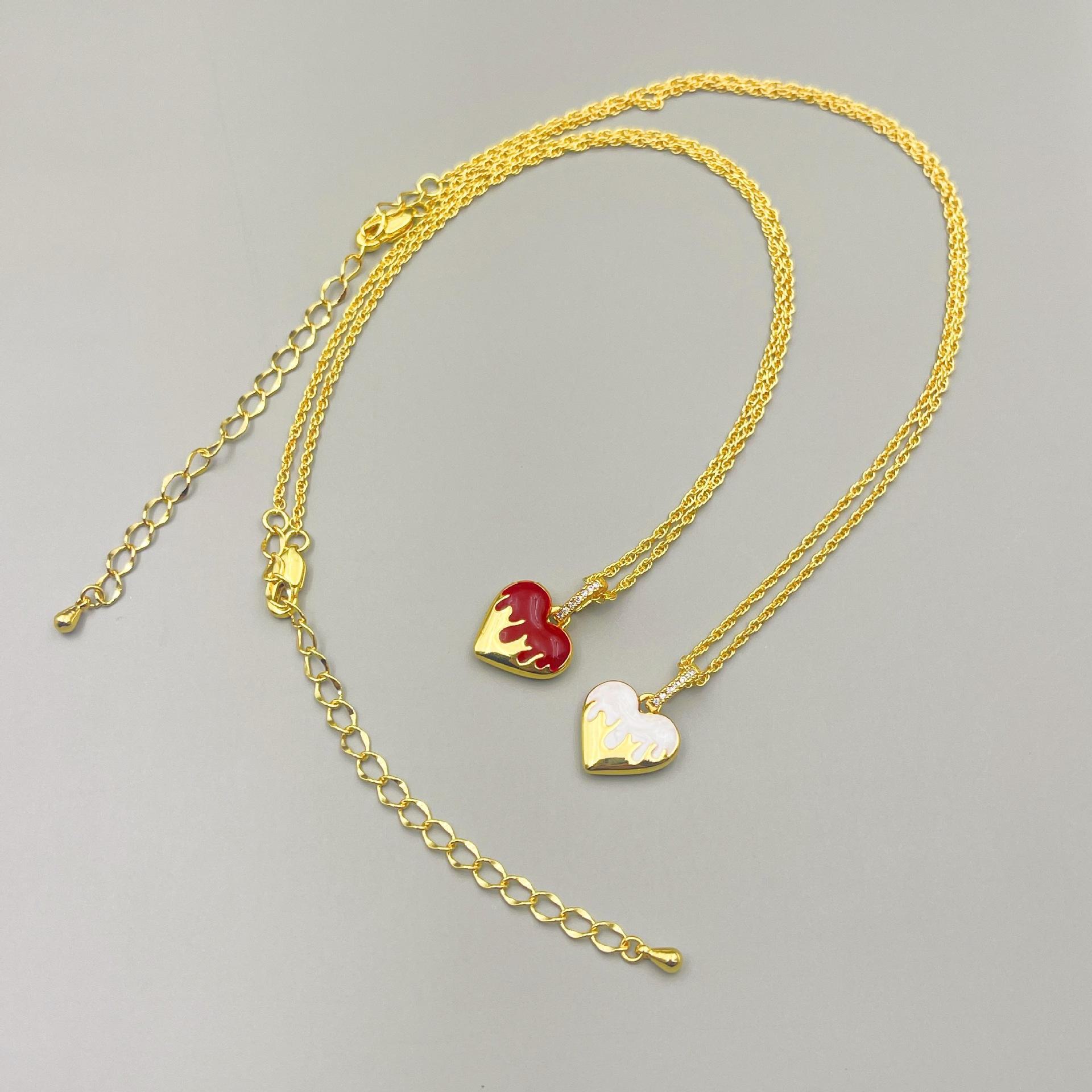 Colar japonês e coreano novo esmalte gota de óleo amor galvanizado 18k ouro real moda all-match simples viajante clavícula corrente