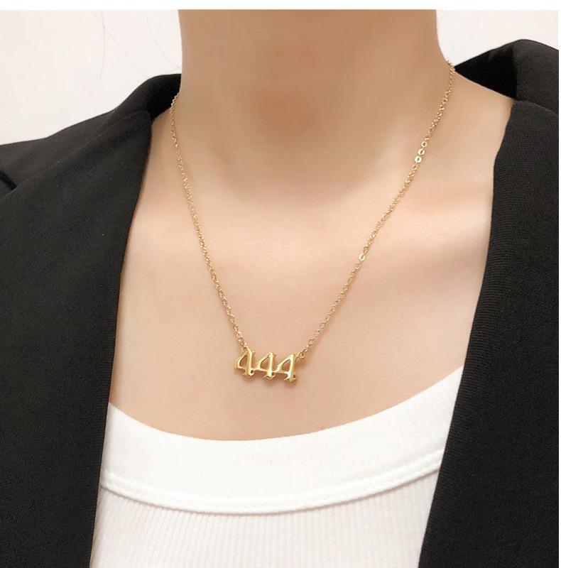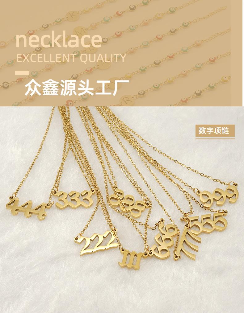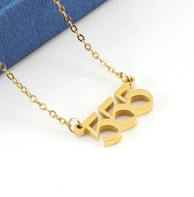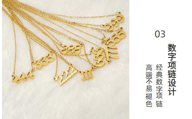 Colar Europeu e Americano Transfronteiriço de Aço Inoxidável Número da Sorte Aço Titânio 18K Pingente de Número Antigo Colar Ins para Mulheres