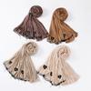 Cachecol longo de malha de algodão mercerizado, cor sólida, elástico, uma ponta, feito à mão, com contas, FEITO À MÃO