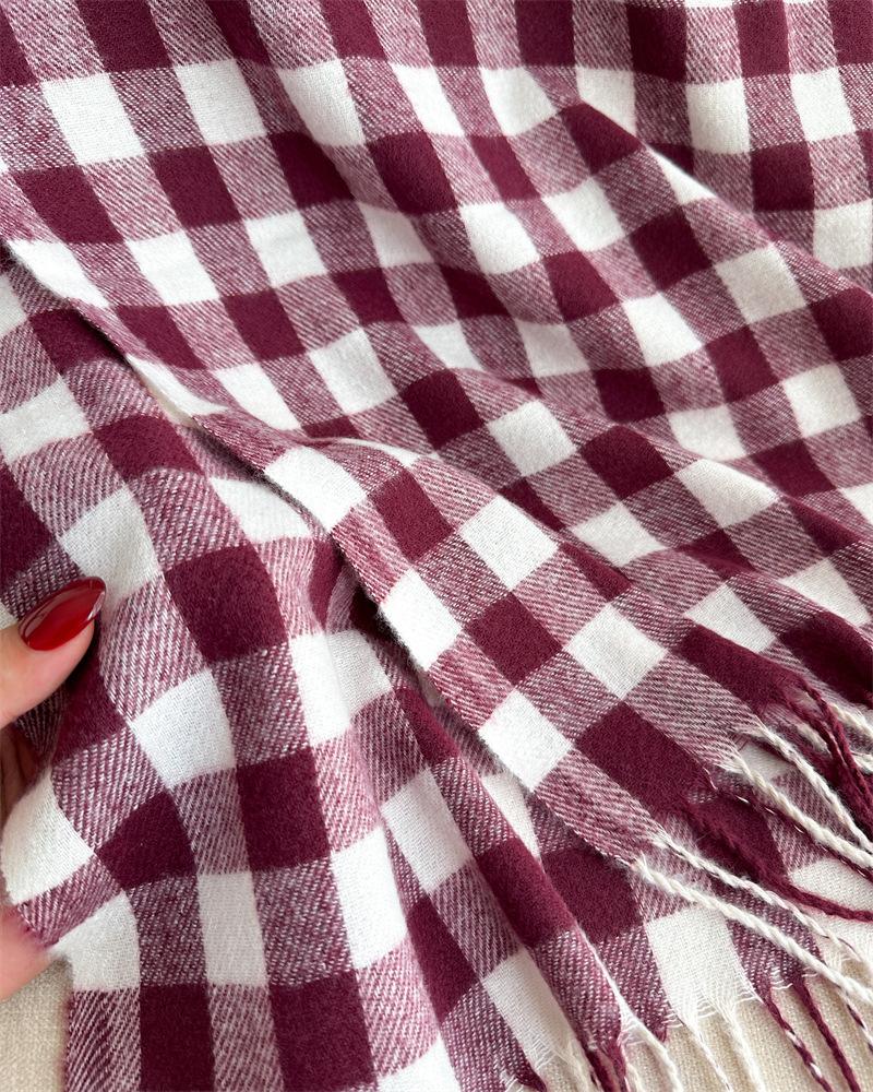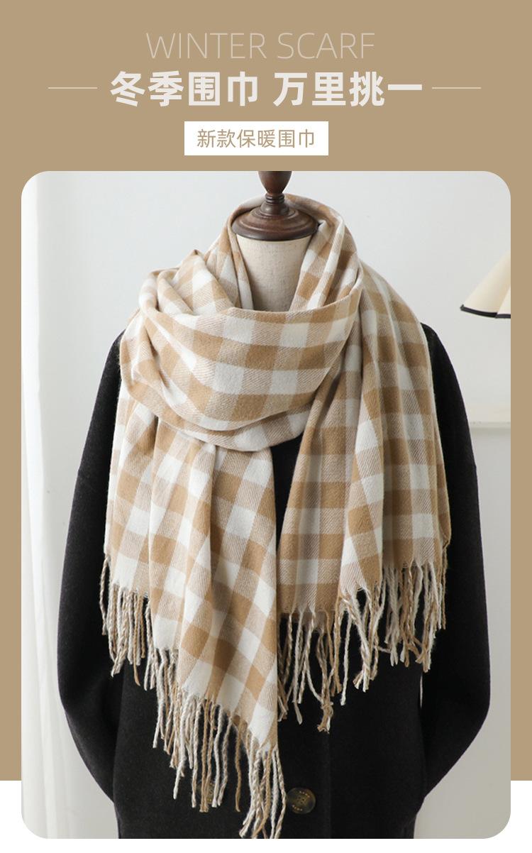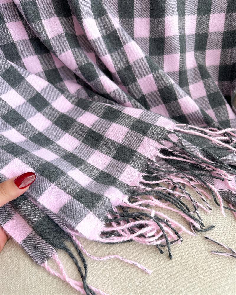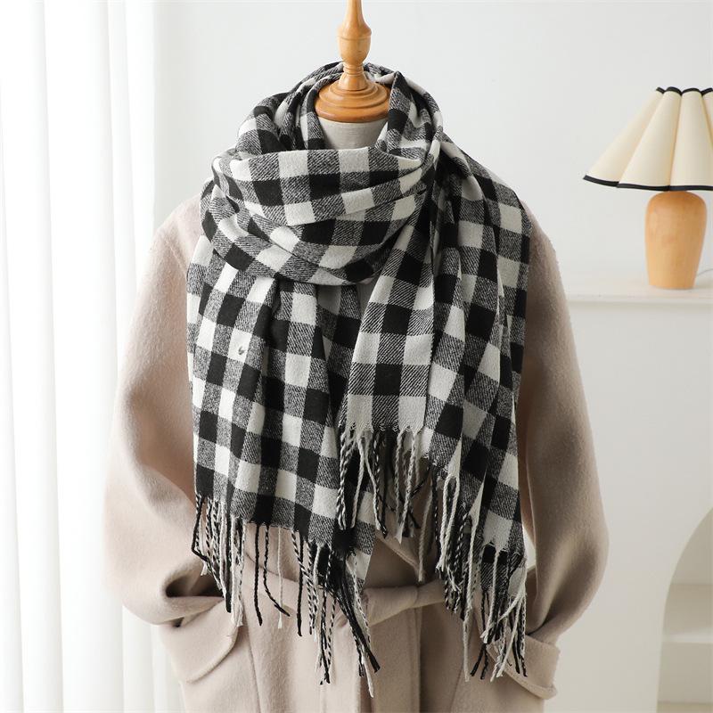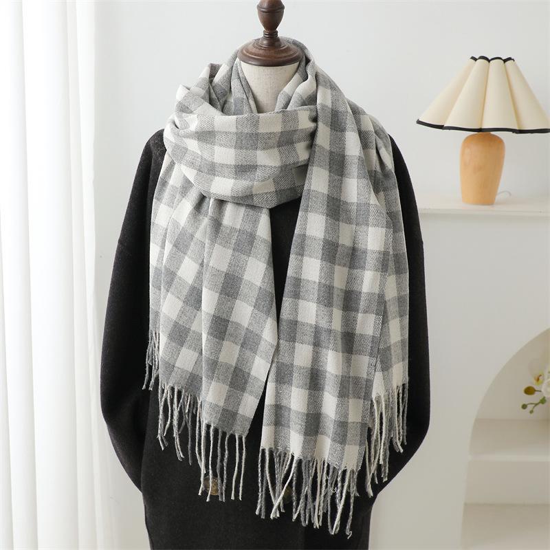Novo Estilo Coreano Xadrez Cashmere Cachecol Outono e Inverno Moda Simples All-match Warm Neck Mulheres Tassel Xaile