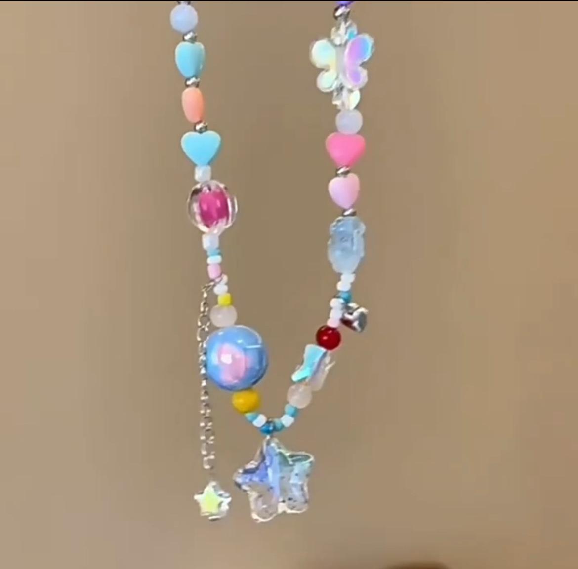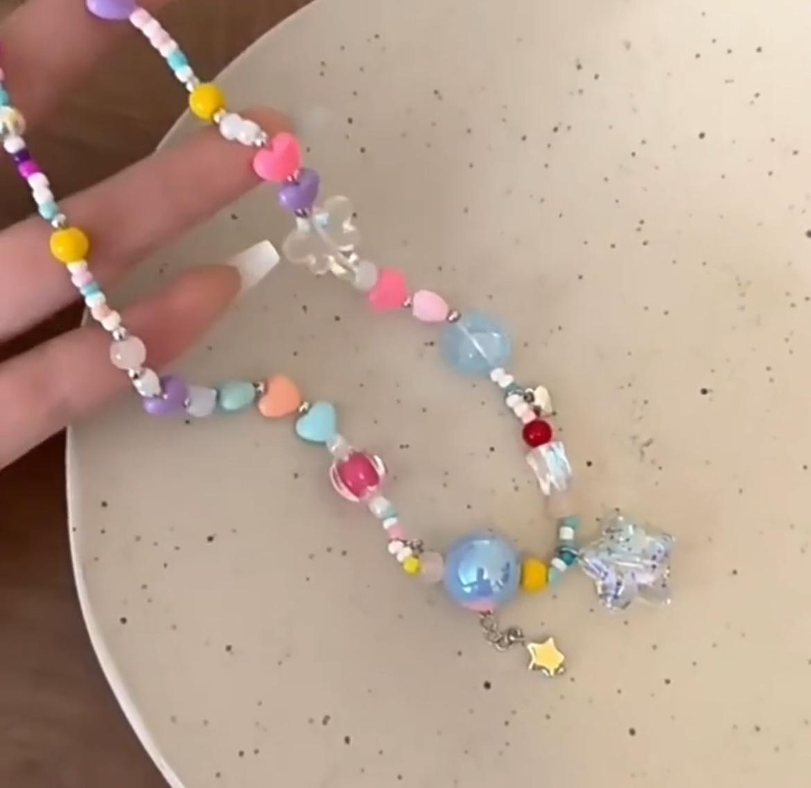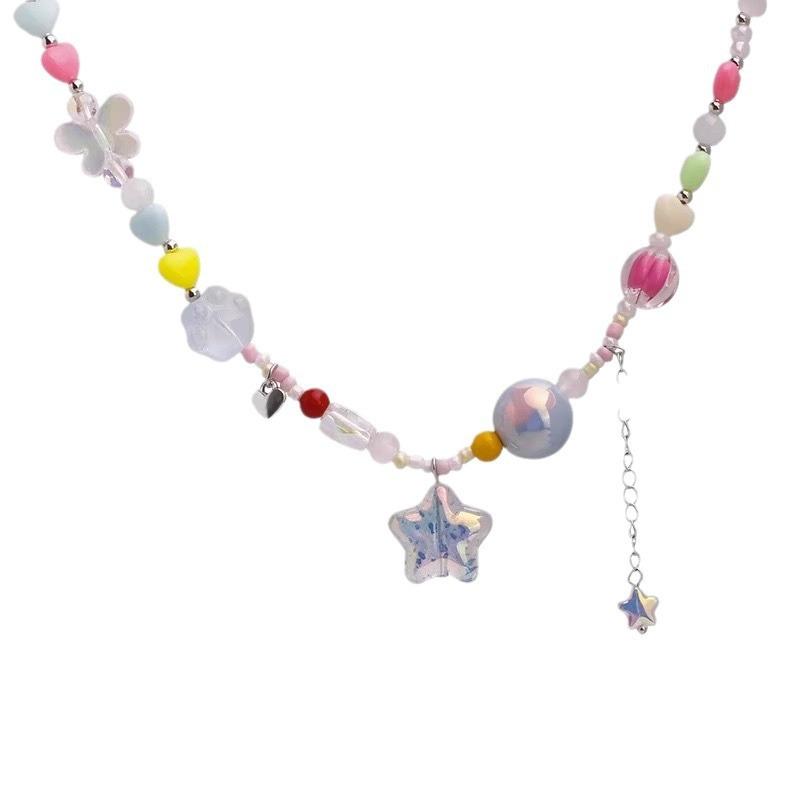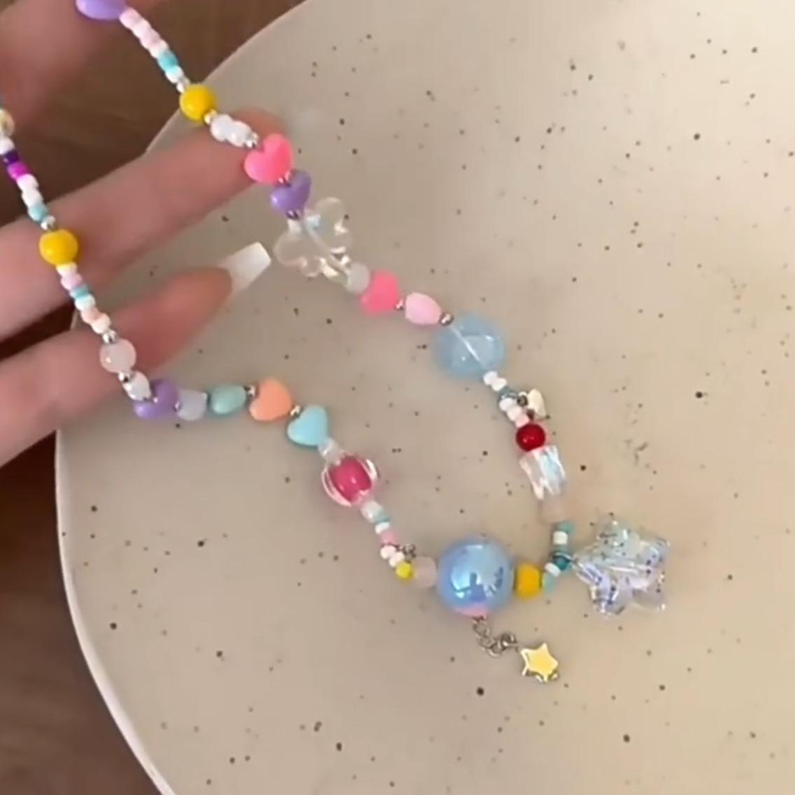 Colar colorido de dopamina para mulheres verão novo colar de contas coloridas para meninas combinando com corrente de clavícula