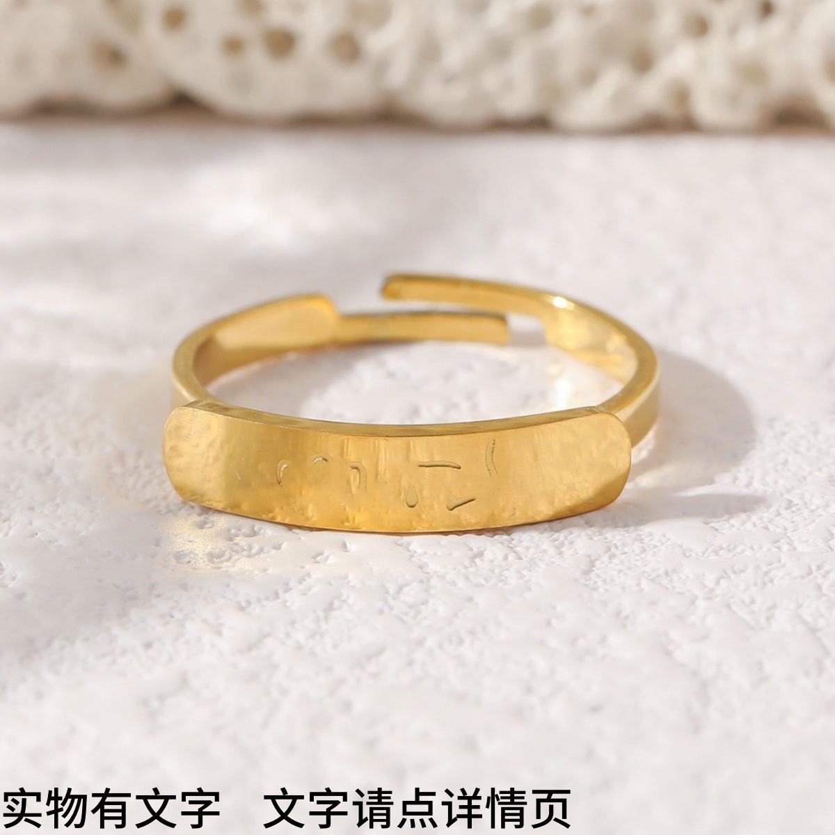 Anel Transfronteiriço Personalizado de Aço Inoxidável Abertura Paz Esculpida Anel de Aço Titânio Feminino Que Não Desbota Joias de Anel Aberto