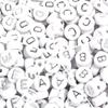 100 Peças/Pacote Contas de Letras Oblatas Acrílicas Fundo Branco Prata 26 Contas de Letras Inglesas Material para Miçangas para Pulseira DIY
