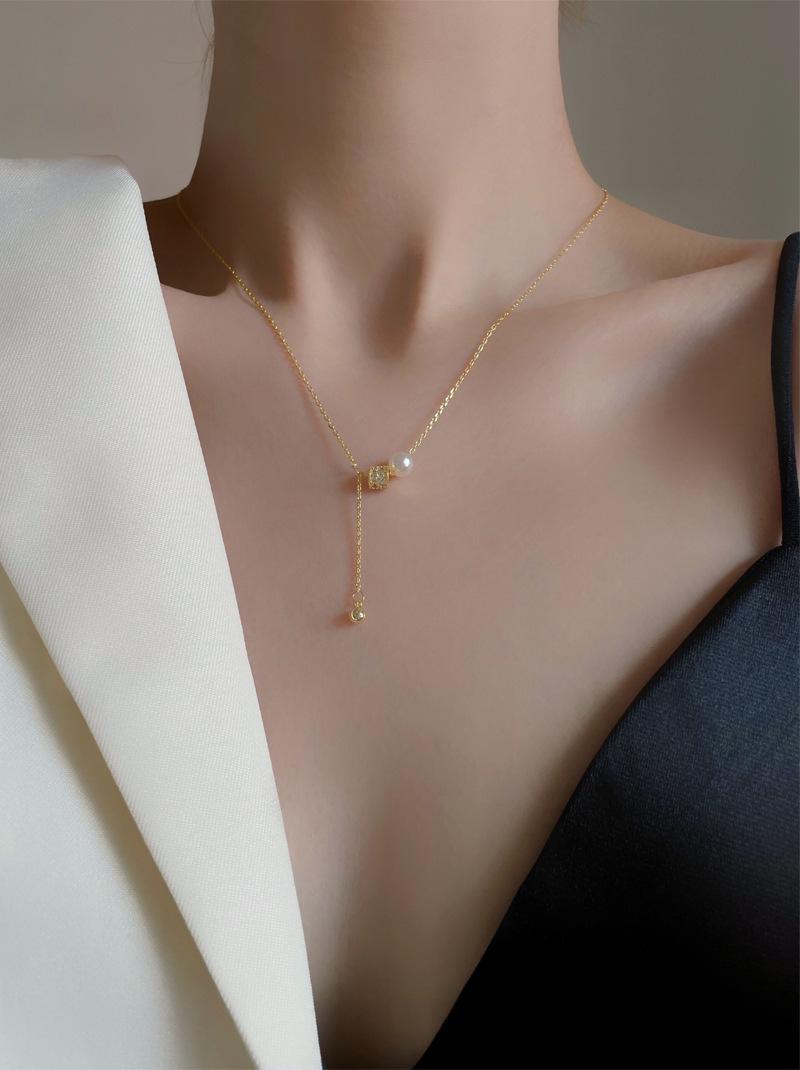Colar de cintura pequena 2023, novo colar feminino de luxo leve para o verão, nicho com corrente de pérola para clavícula