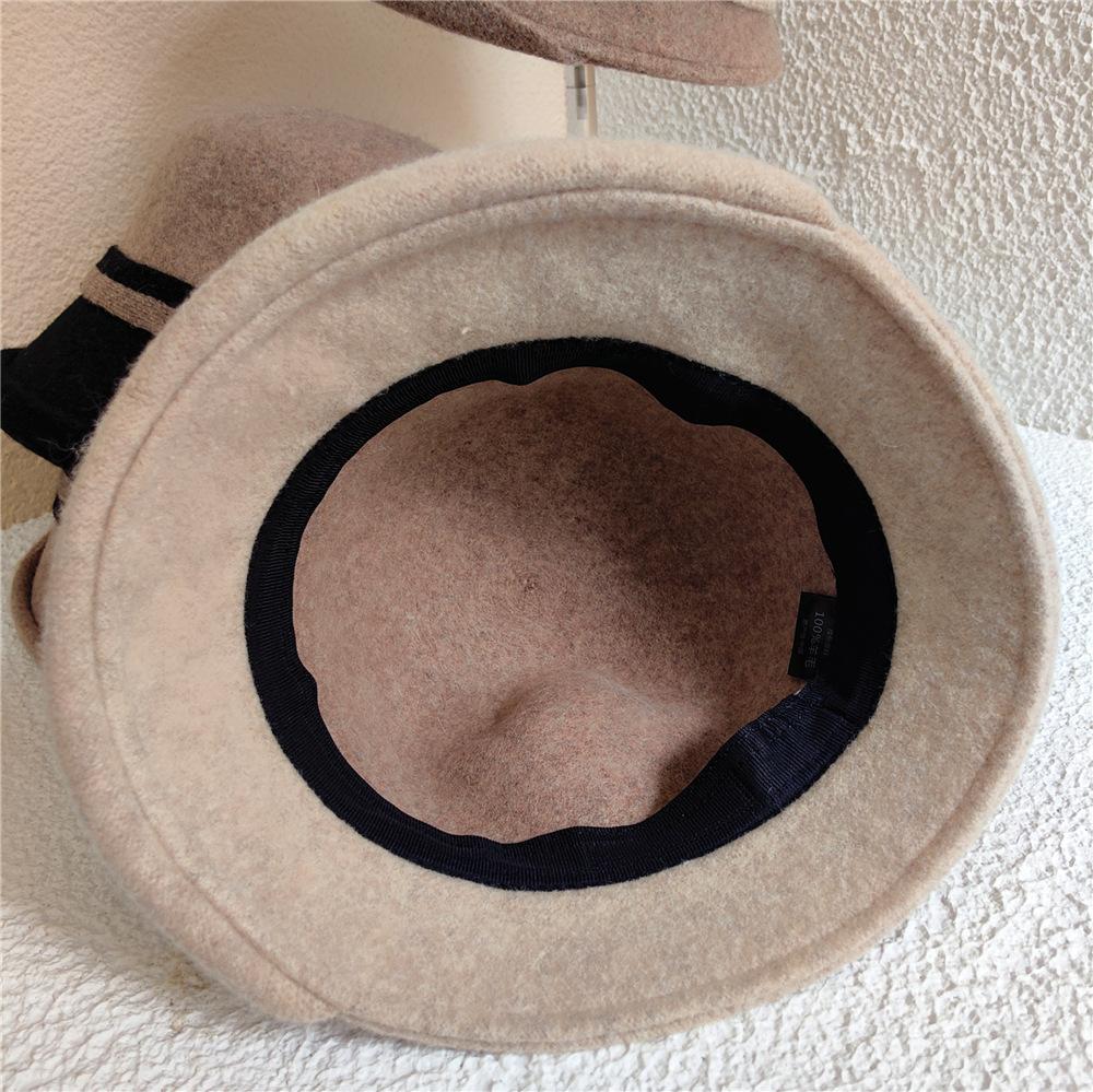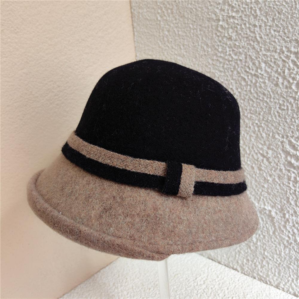 Outono e inverno novo chapéu de lã pura chapéu de lã retrô das mulheres chapéu de pescador chapéu de lã chapéu-coco das mulheres correspondência de cores francês chapéu redondo