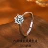 Anel Europeu e Americano Transfronteiriço de 1 Quilate de Zircônia para Mulheres, Prata Esterlina 925, Luxo Leve, High-End, Moderno, Anel de Casamento Clássico de Diamante com Seis Garras