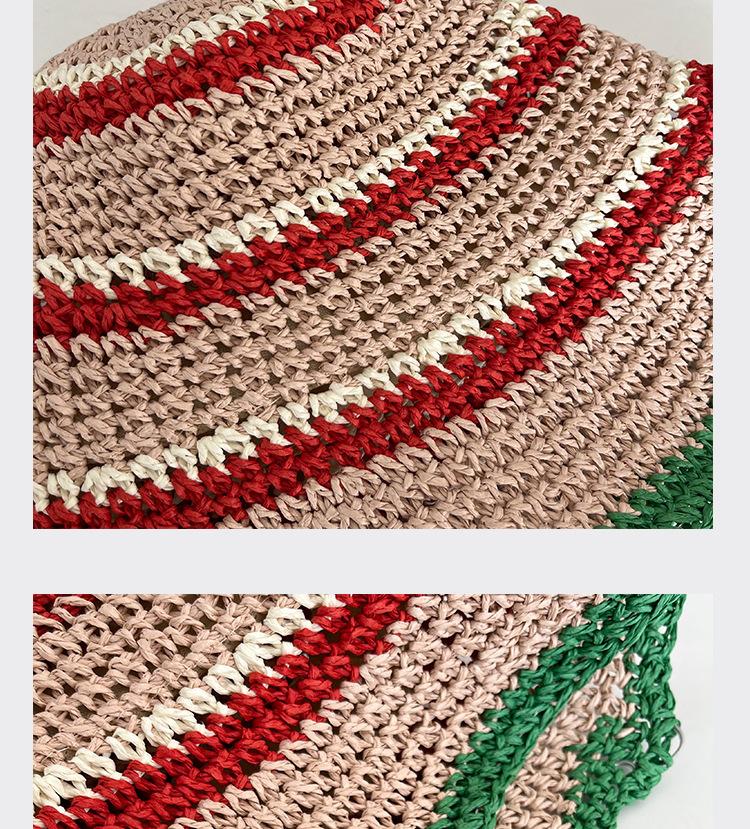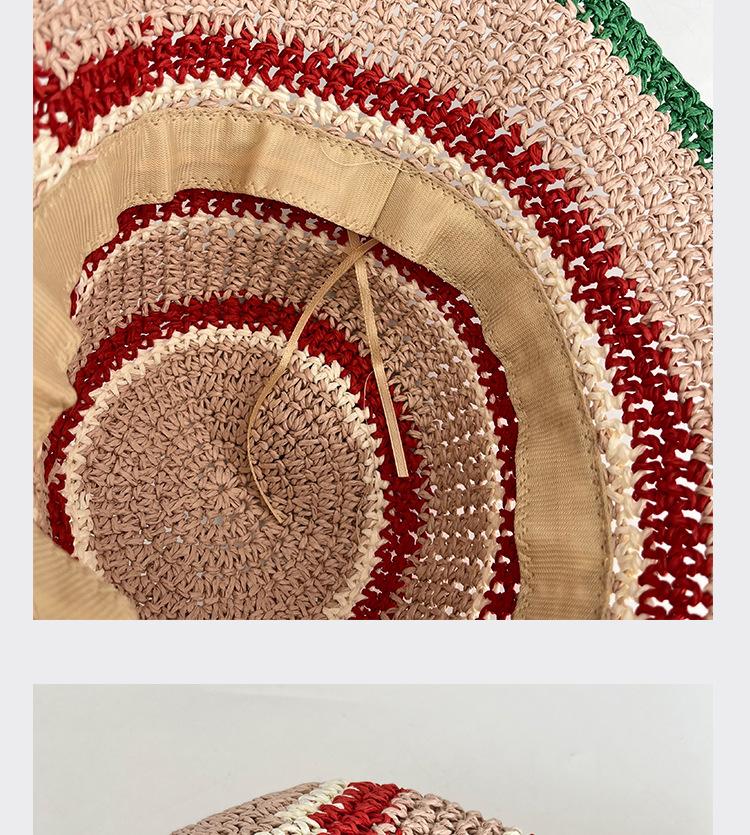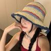 Chapéu de Palha Listrado para Mulheres 2024 Novo Guarda-sol de Viagem de Férias na Praia Protetor Solar Colorblock Chapéu de Sol de Aba Grande