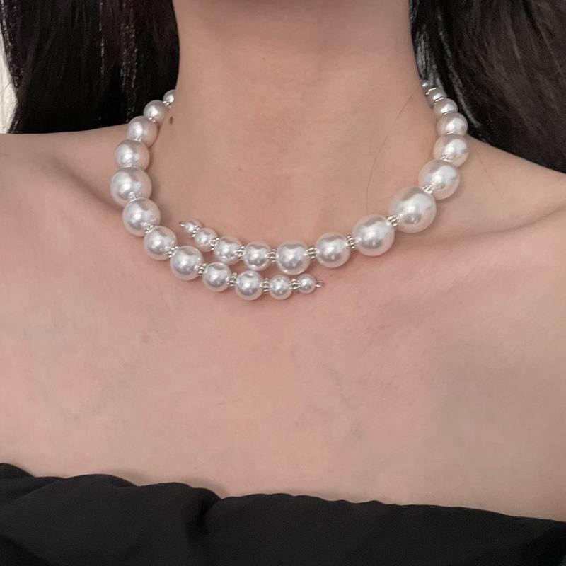 Colar de Costura de Pérolas Tamanho Retro Francês Design de Nicho Sentido Abertura Colar Novo Colar Explosivo Clavícula Cadeia