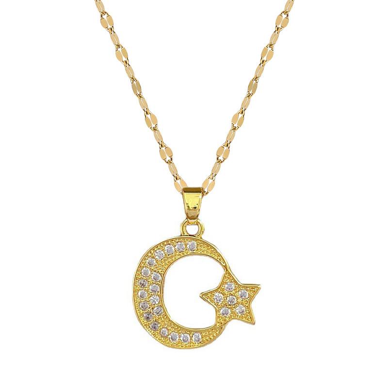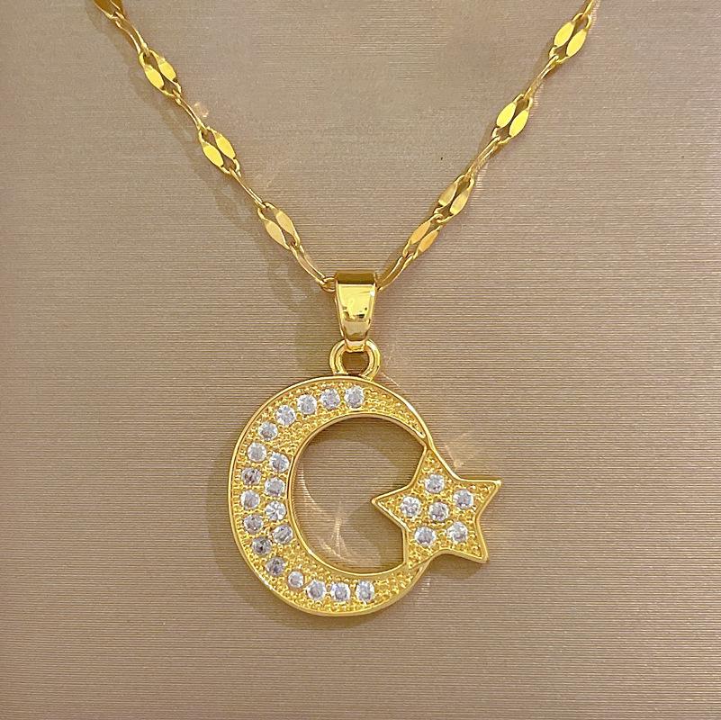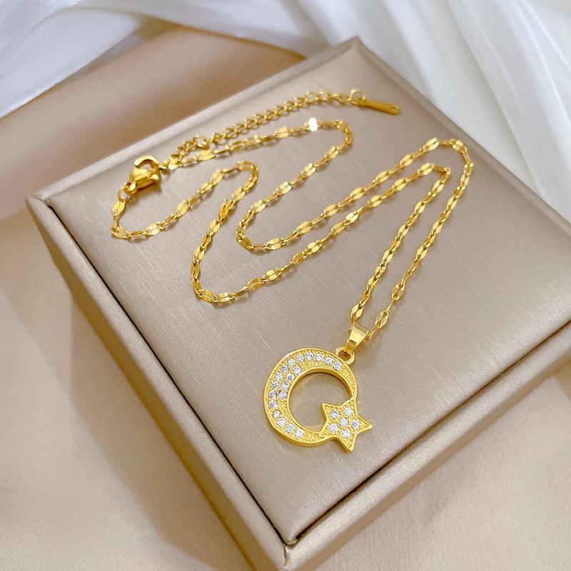 [Aço Titânio] Estrela Lua Luxuosa Colar Transfronteiriço para Banquete Casamento Feminino Celebridade da Internet Mais Fácil de Combinar Corrente para Clavícula Corrente de Aço Titânio
