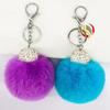 Compre Novo DIY Real Rex bola de pele de coelho bola de diamante chaveiro pingente de diamante bonito bola de pelúcia acessórios de pingente feminino no atacado no Joom.pro