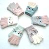 Atacado 5-11 anos de idade estudantes da escola primária inverno frio quente luvas de malha gatinho padrão dobrado luvas de lã de vison