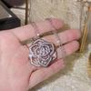 Light Luxury Elegant Flower Niche Design Texturizado Jóias Micro-incrustadas com Diamante Rosa Colar Brincos Terno Feminino