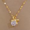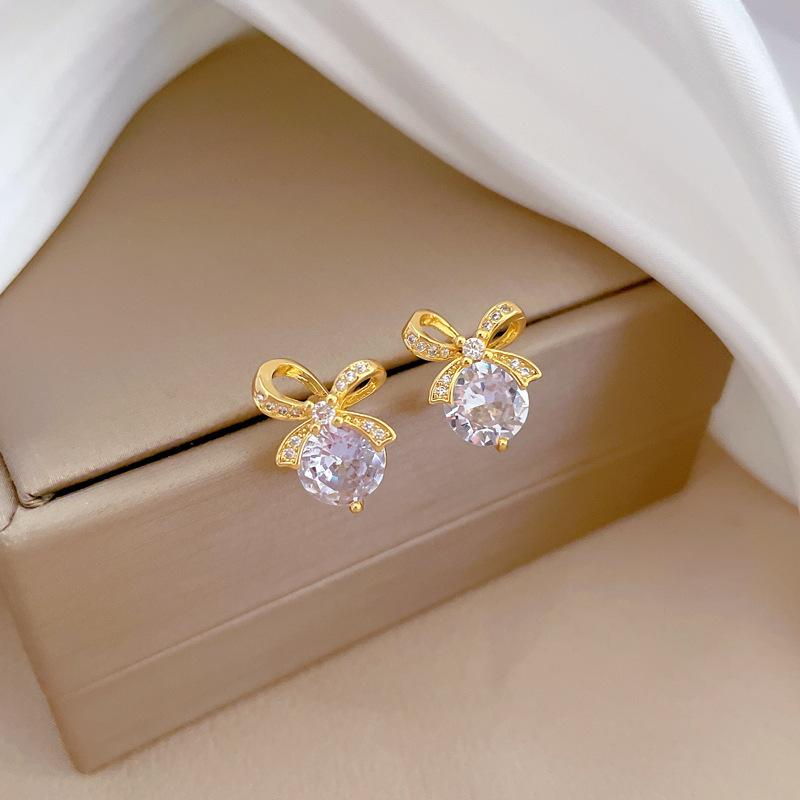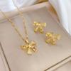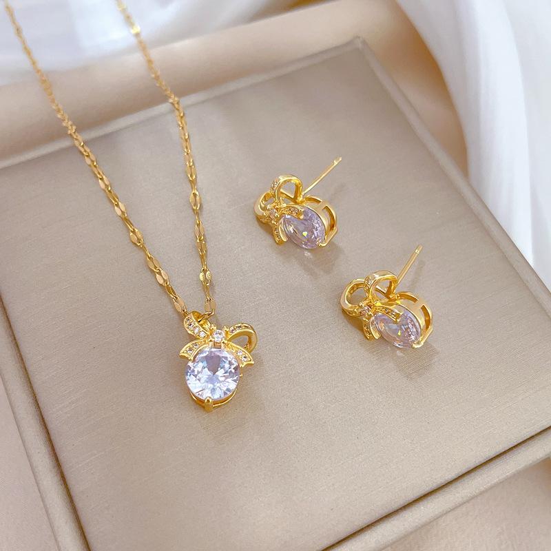 [Aço titânio] Brincos de colar microincrustados combinam com brincos de colar de personalidade elegante e laço de luxo leve