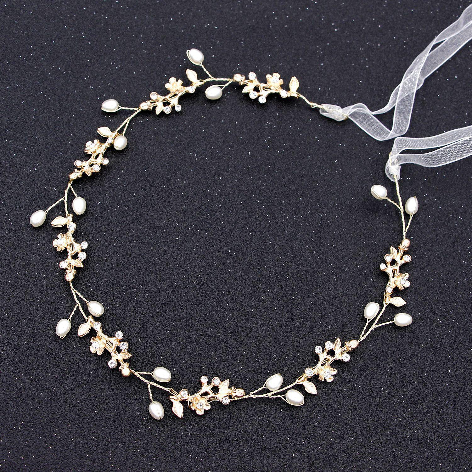 Faixa de cabelo de cristal pérola dourada simples estilo coreano atmosférico acessórios para vestido de noiva simples novo