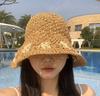Protetor solar de verão Chapéu de palha dobrável feminino à beira-mar Chapéu de aba grande mostrando rosto Pequeno protetor solar Chapéu de pescador Chapéu de bacia