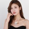 Colar Corrente de Pérolas Simples Europeu e Americano Transfronteiriço Tridimensional Pingente Geométrico Retangular de Aço Inoxidável da Moda para Mulheres Pode Ser Gravado