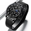 Fornecimento direto da fábrica, novo, grande venda, falso, três olhos, relógio de malha masculino, sol, lua e estrelas, calendário empresarial, relógio de quartzo masculino