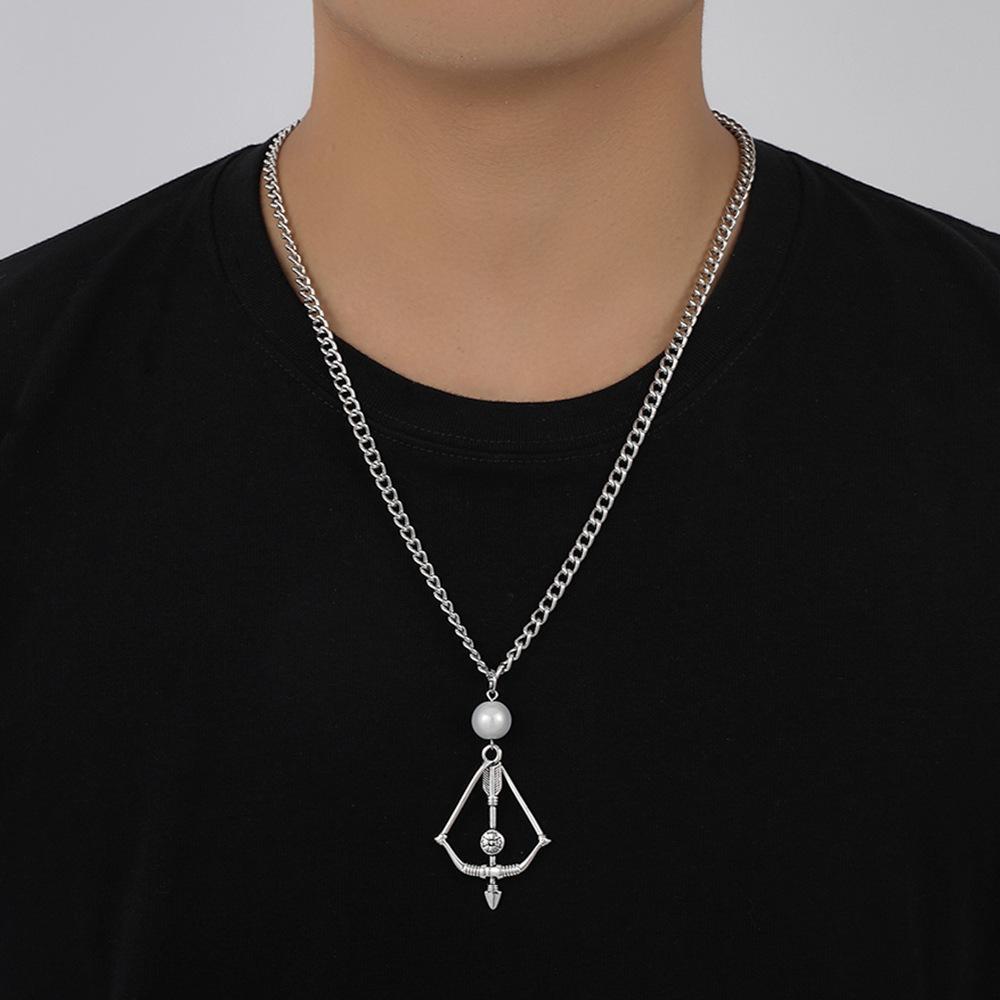 Moda transfronteiriça dominadora aço inoxidável amor deus cupido flecha pérola pingente titânio aço moda tridimensional lindo colar