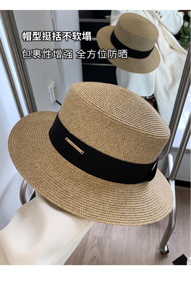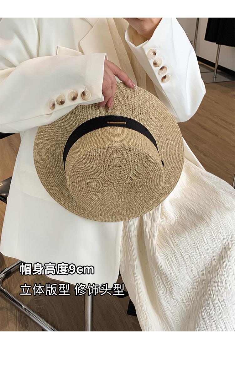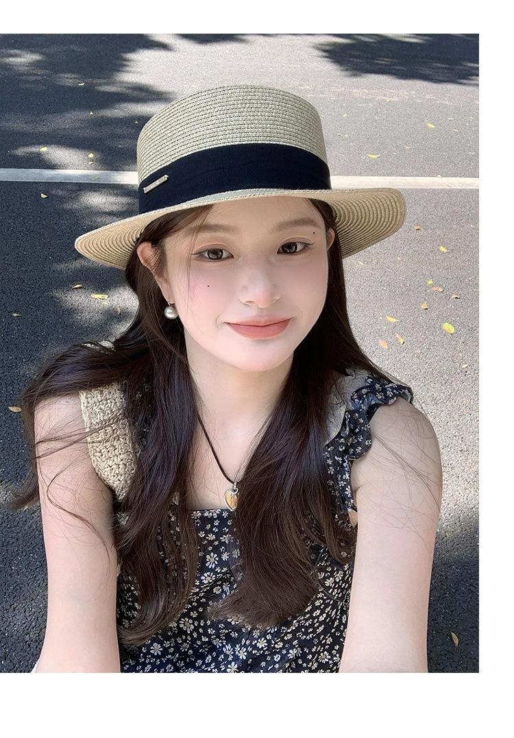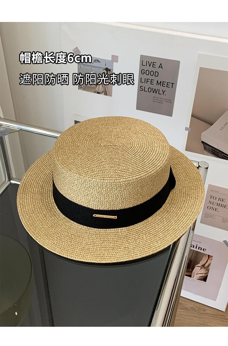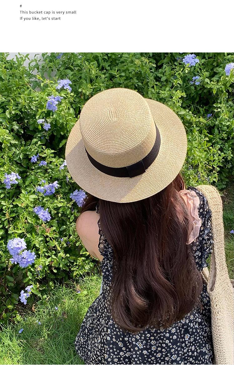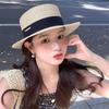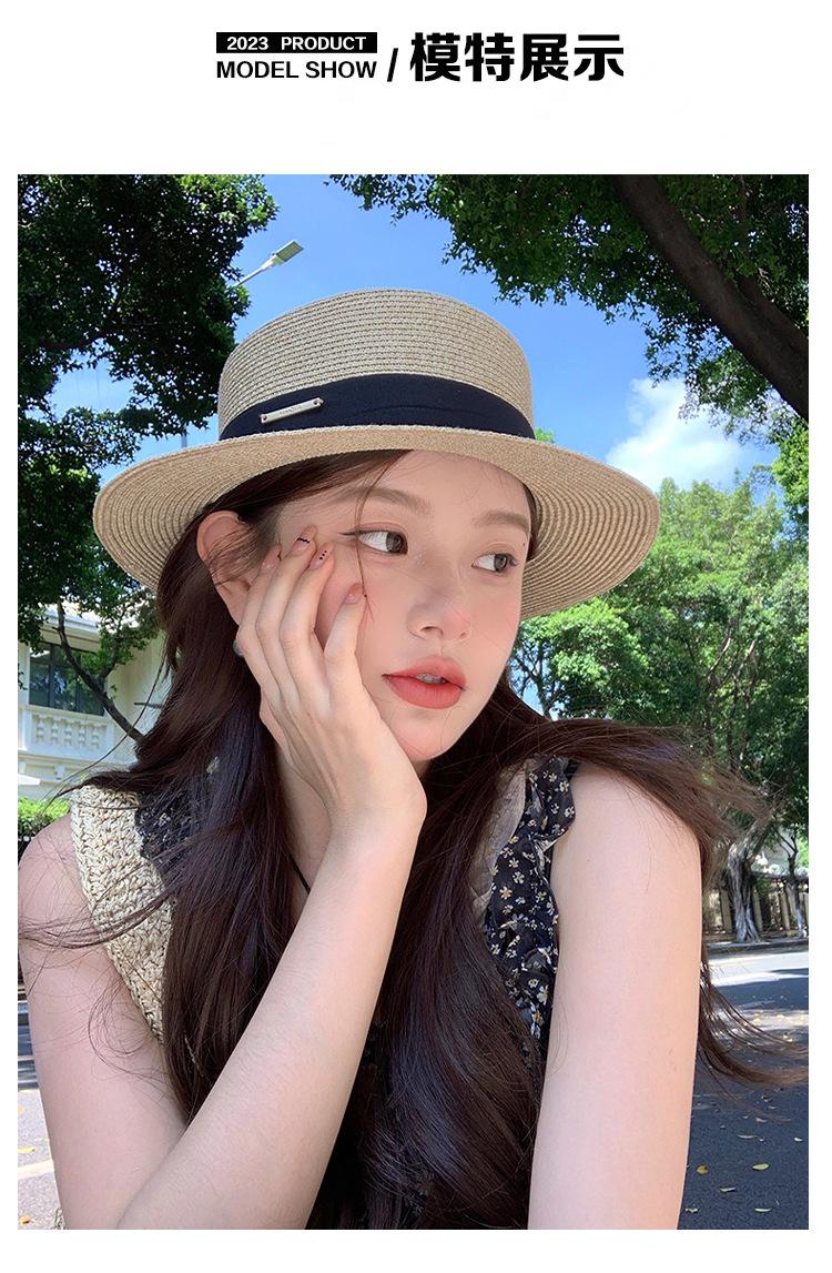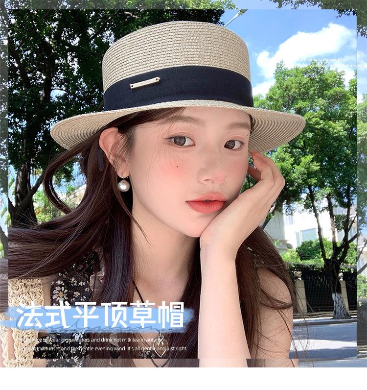Chapéu de palha de topo plano para mulheres Verão Fotografia de viagem à beira-mar Protetor solar Chapéu de sol Chapéu de praia francês Chapéu de guarda-sol