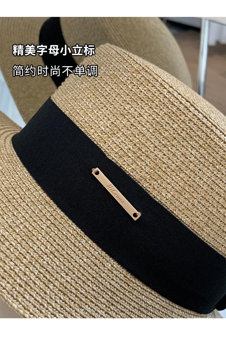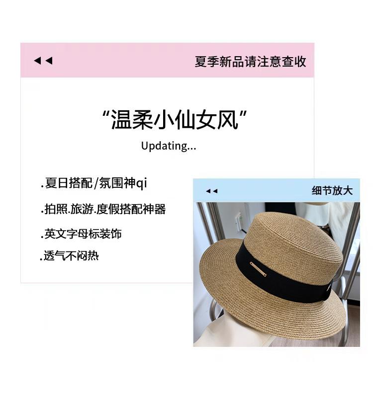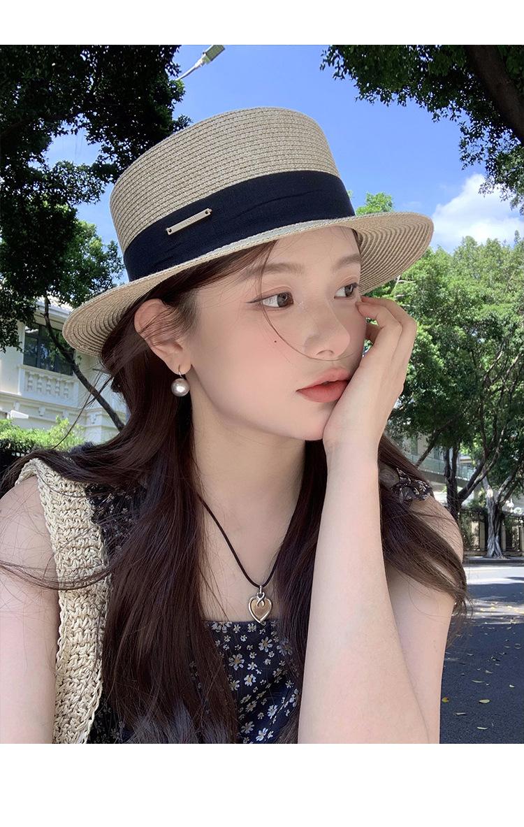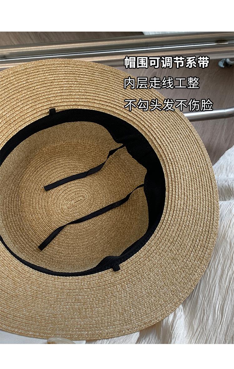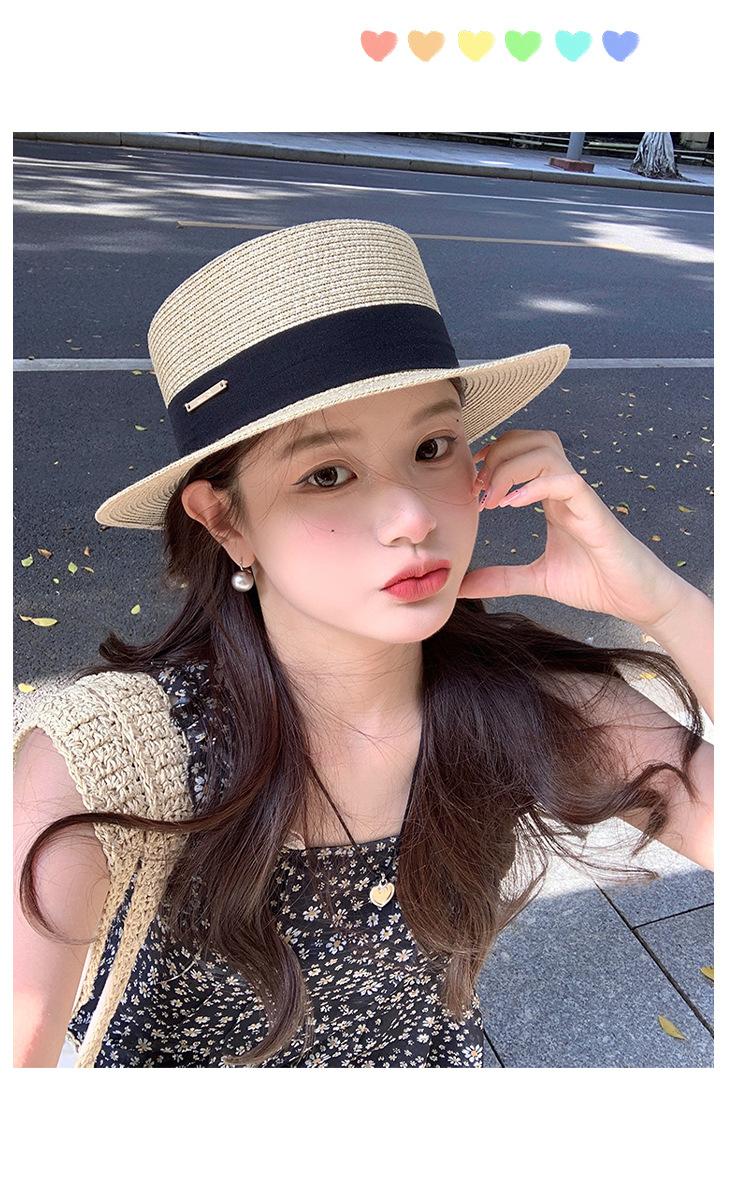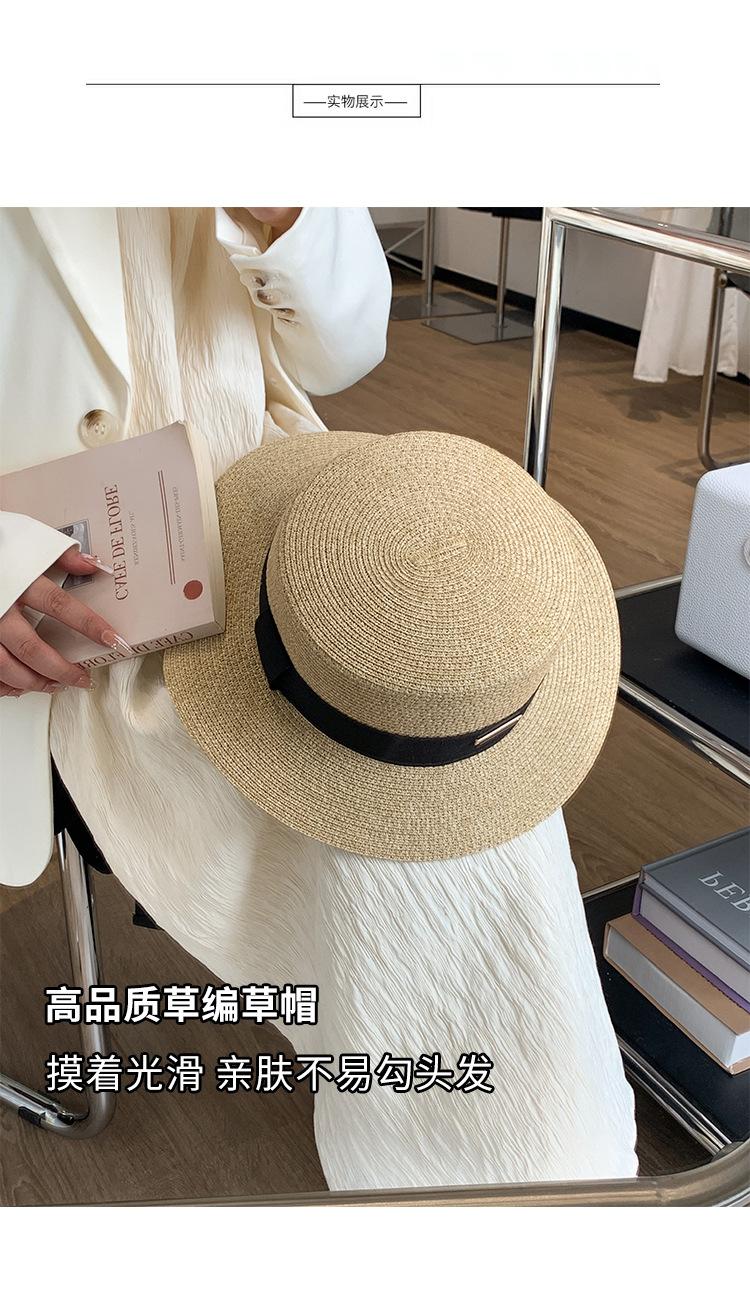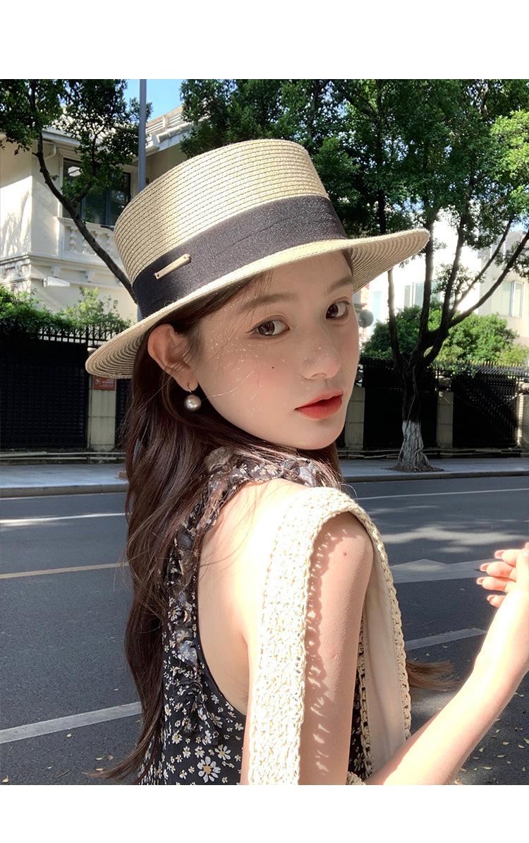 Chapéu de palha de topo plano para mulheres Verão Fotografia de viagem à beira-mar Protetor solar Chapéu de sol Chapéu de praia francês Chapéu de guarda-sol